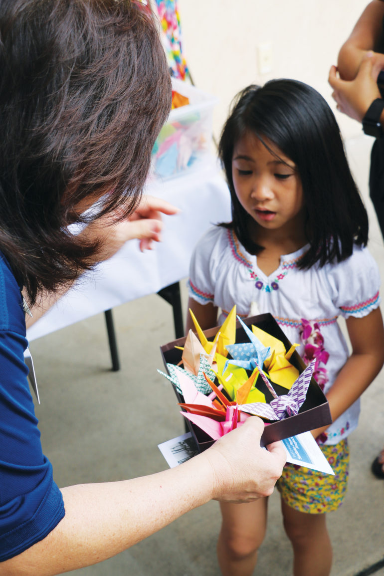 One of the cranes she folded is on display at the Pearl Harbor Visitor Center. Throughout the year, Punahou Japanese language students hold events at the center, where they share the message of peace by teaching visitors the story of Sasaki and how to fold their own cranes – an activity that the Hiroshima Peace Scholars participate in every year in the weeks leading up to the trip.