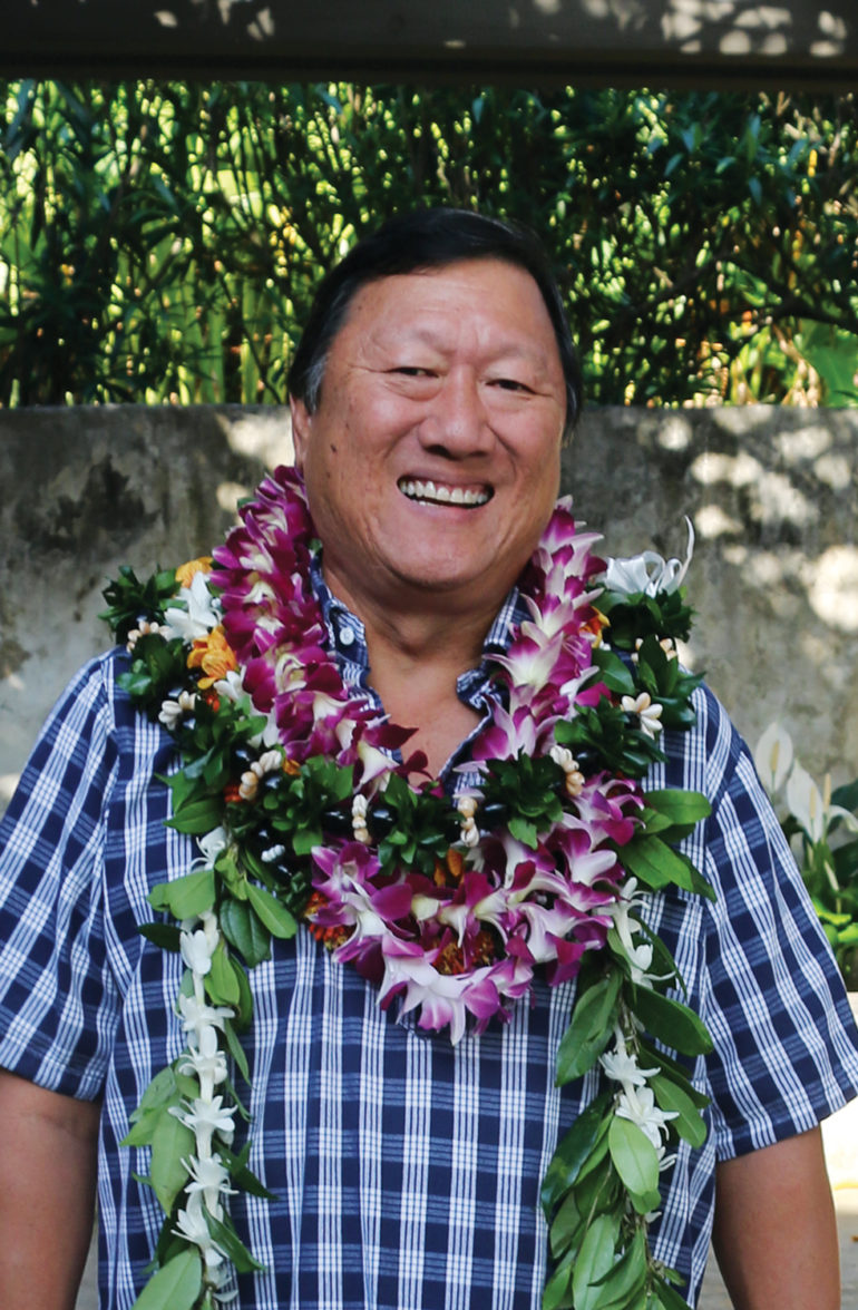 One of Roy’s favorite pastimes is to grab a pole and fish when he’s on Hawai‘i Island or Kaua‘i, where he frequently travels to take care of family members. He and wife Collette have two grown children, Wyatt ’02 and Joy Akahoshi ’05 Lau. He enjoys spending time with his grandson, Evan (2).