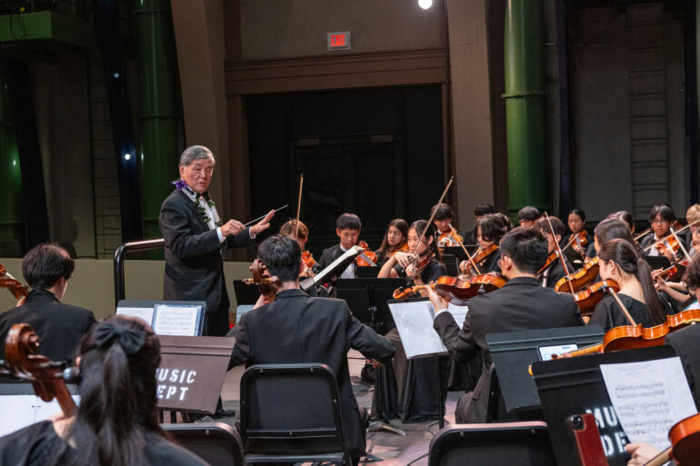 Dr. Jonas Carlson opened the program with a performance of Swell Lines, a piece written for Punahou’s 175th anniversary and dedicated to Carlson and the Punahou Symphony Orchestra. Another highlight of the evening was the world premiere of a new composition by Conley, who also returned to the stage as the soloist. His collaboration with the Symphony marked a meaningful homecoming.