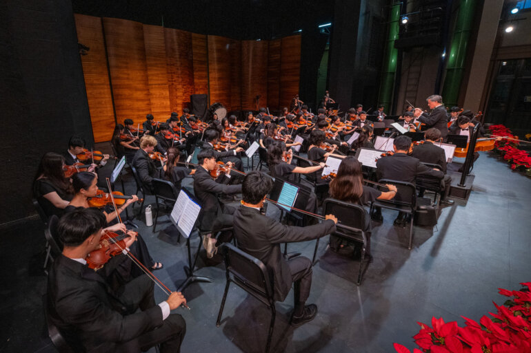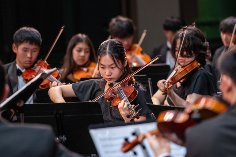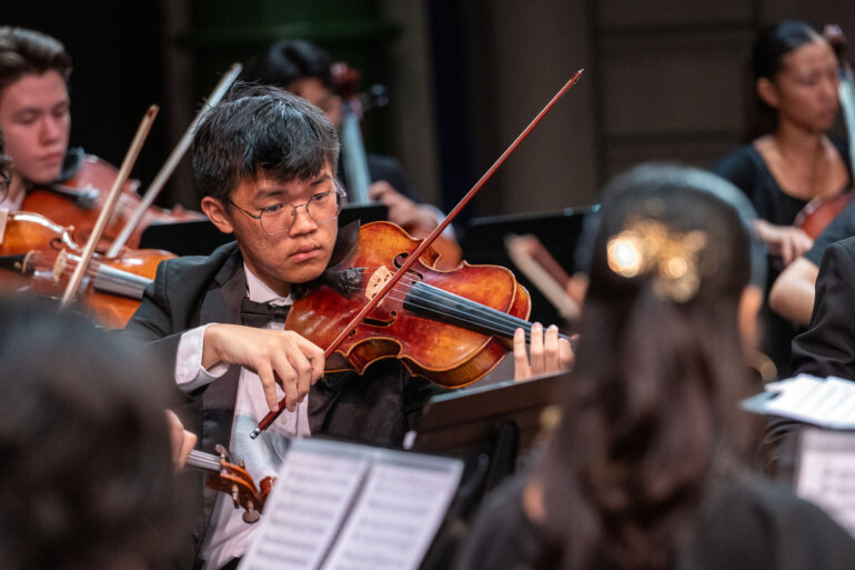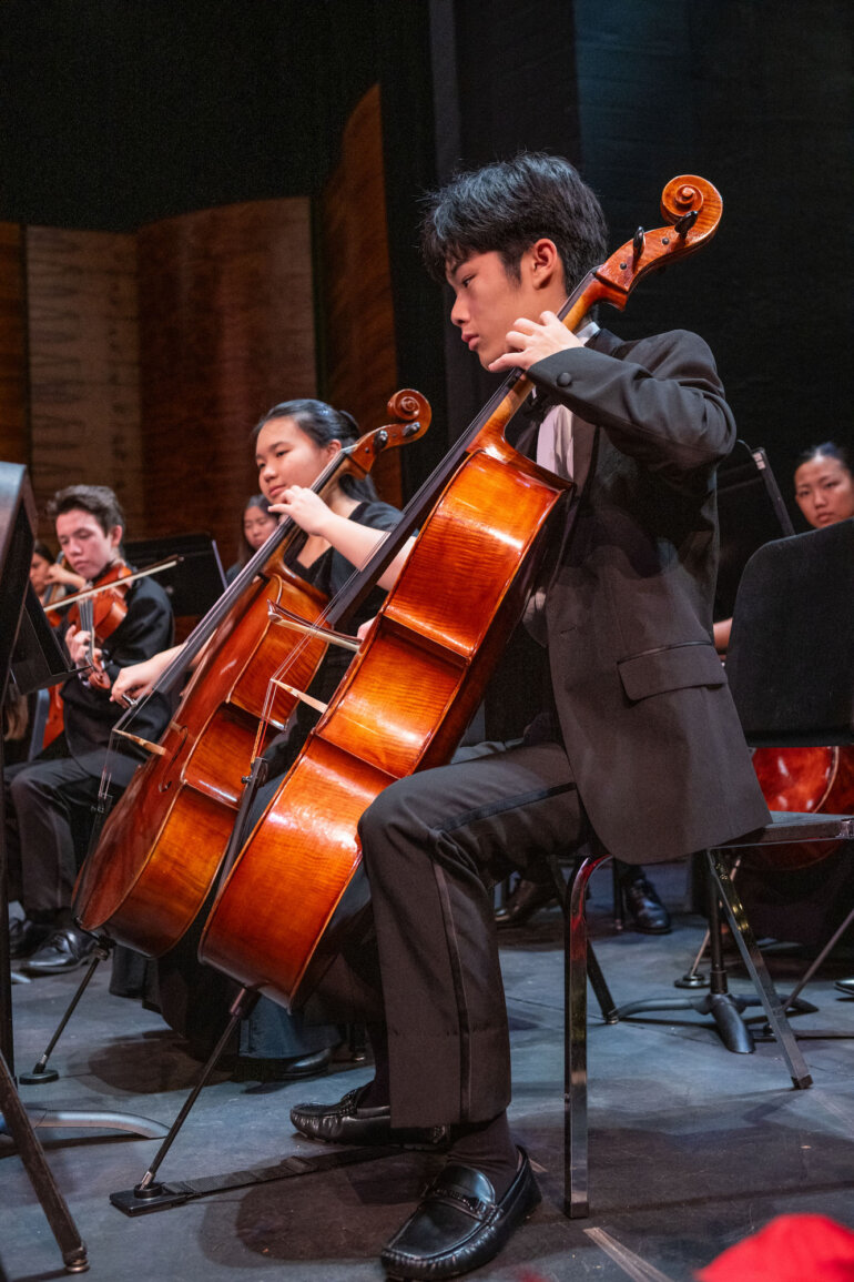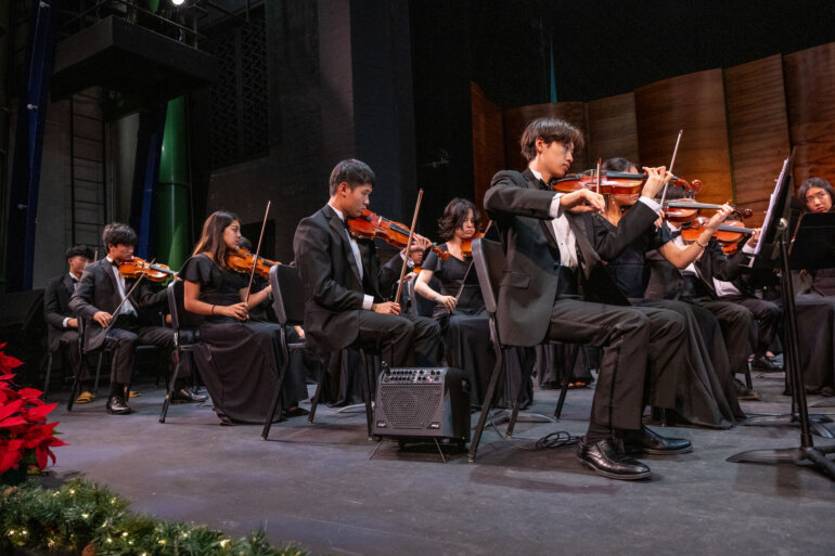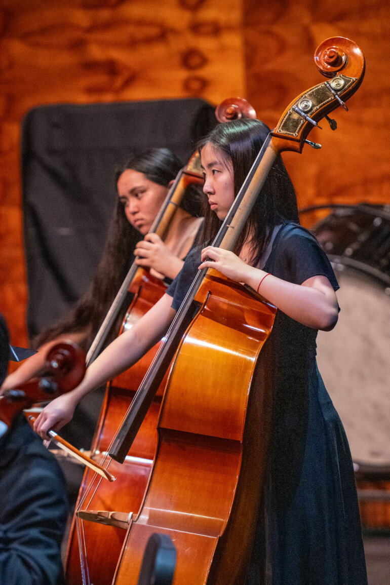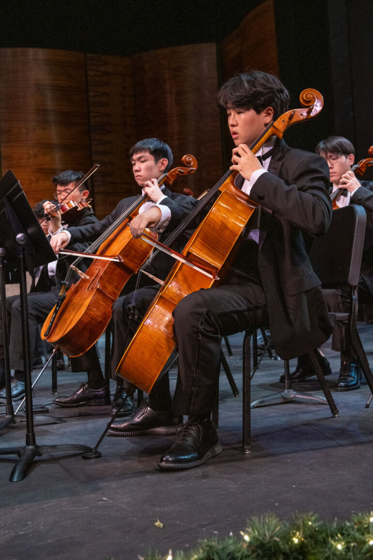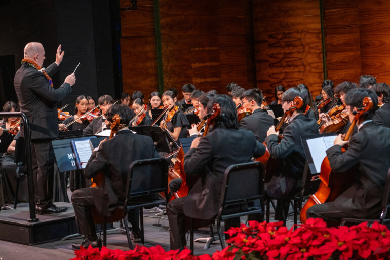 The Symphony Winter Concert, held on Friday, Dec. 5 in Dillingham Hall, brought together Punahou musicians for an evening that highlighted both tradition and innovation. The program featured works by alumni composers Jon Magnussen ’86 and Shawn Conley ’01, alongside selections by Eric Whitacre, Dag Wirén and Edward Elgar.