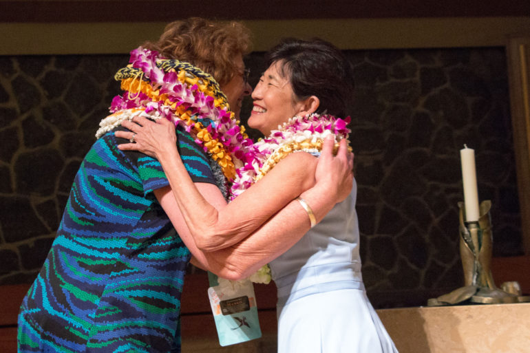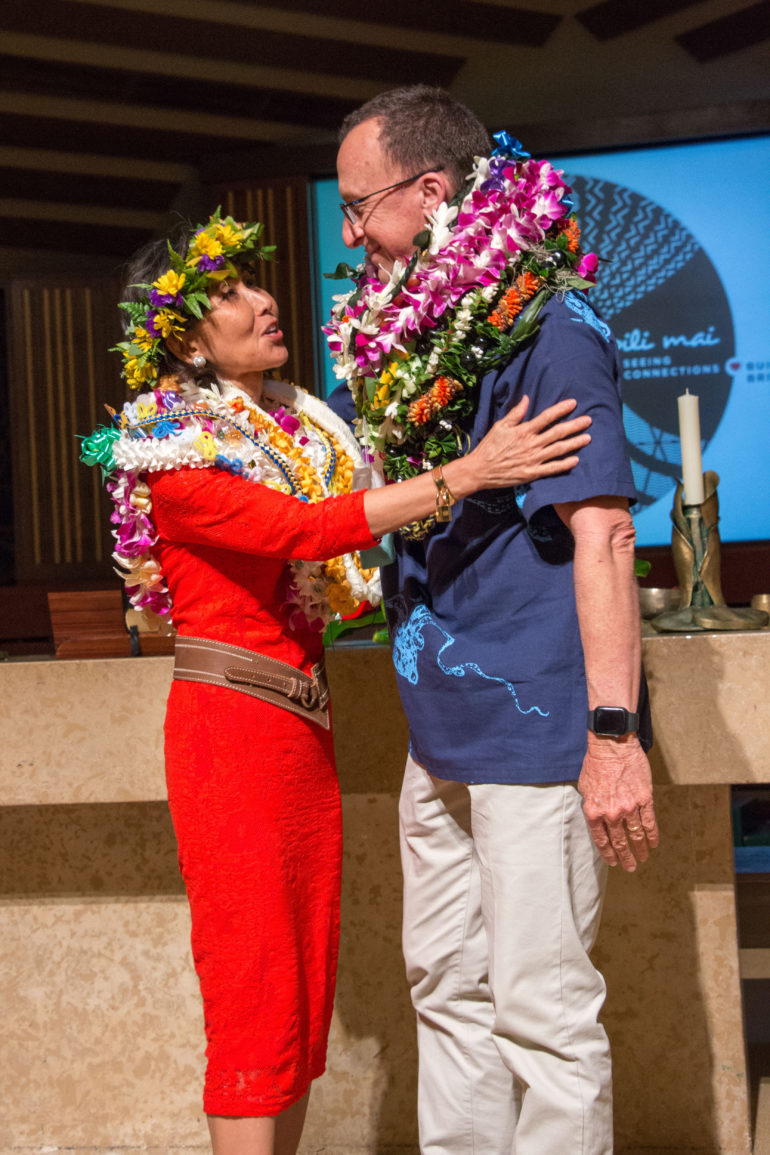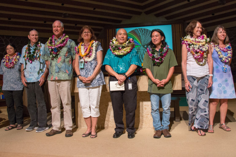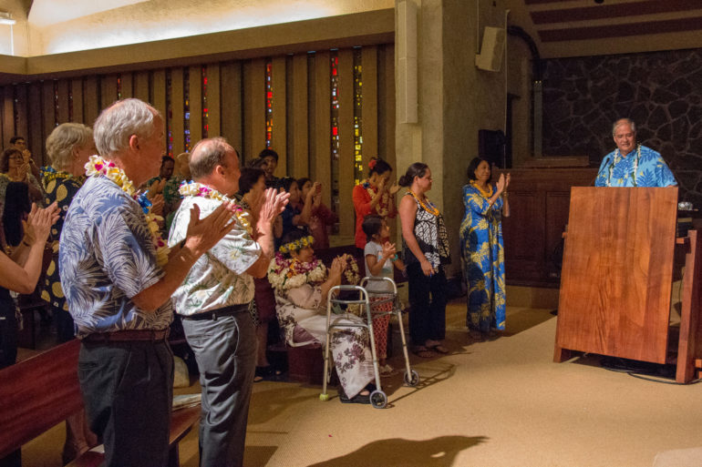 Punahou’s 27 retirees, as well as longtime employees celebrating milestone anniversaries, were honored Wednesday at the School’s annual Aloha Ceremony. Faculty and staff celebrating 10-year, 15-year, and all the way up to 45-year-anniversaries attended the event at the Chapel, along with their friends, colleagues and family members.