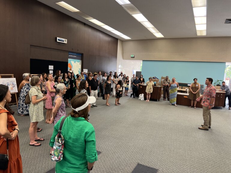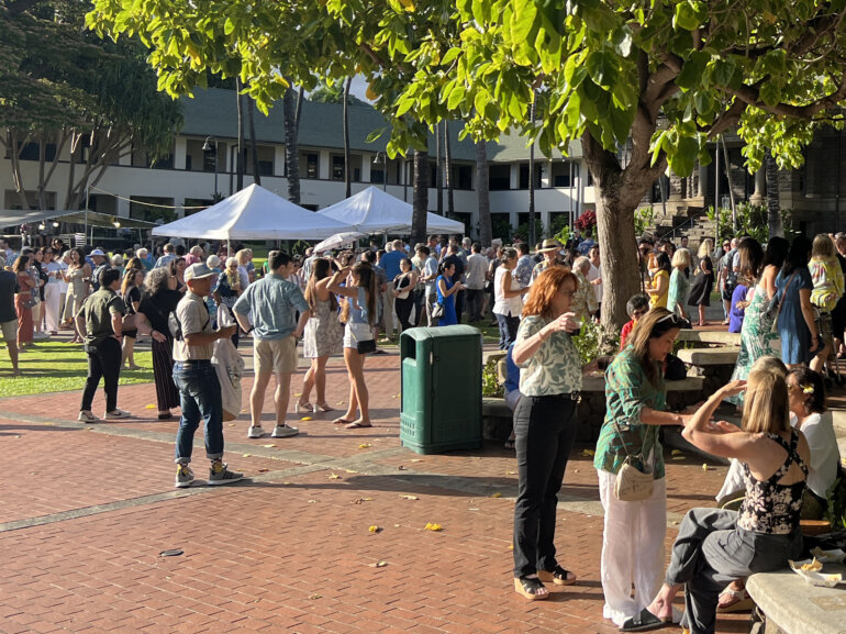 Punahou alumni from all classes were welcomed back to campus for Thursday’s E Ho‘i Mai Alumni Celebration, as part of the Alumni Week festivities. Guests enjoyed an evening of camaraderie, food, drink and music by alumni performers. Alumni also learned about the upcoming Academy Learning Commons remodel and bid farewell to Cooke Library by signing their names to the building’s commemorative wall.