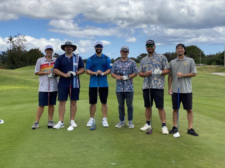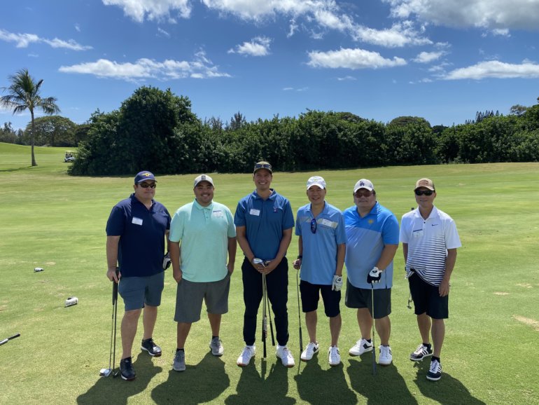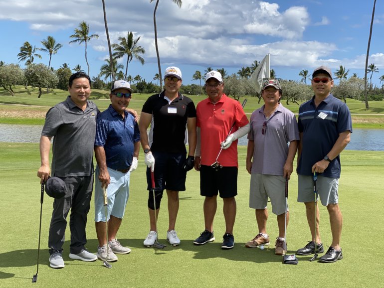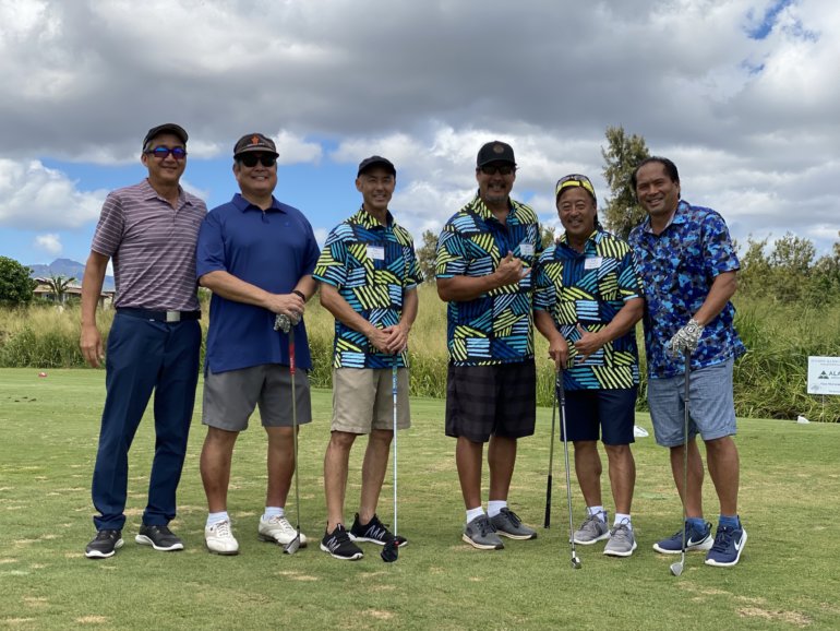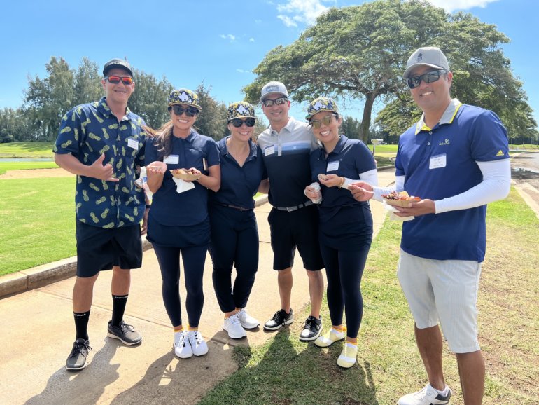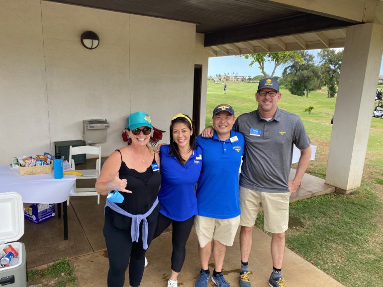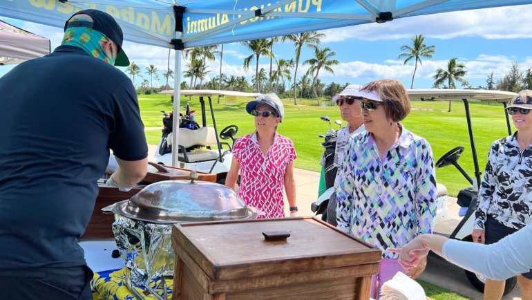 Refreshments were donated by Beer Lab (Kellie Kong ’02 Taguchi and Kailey Onizuka ’08 Wong) and Kona Brewing Company (Eric Chang ’93). Golfers also enjoyed breakfast bento from Zippy’s Restaurants (Jason Higa ’81) and smokey bbq from This Lil Piggy Slow-Smoked Grinds (Toma Turner ’94).