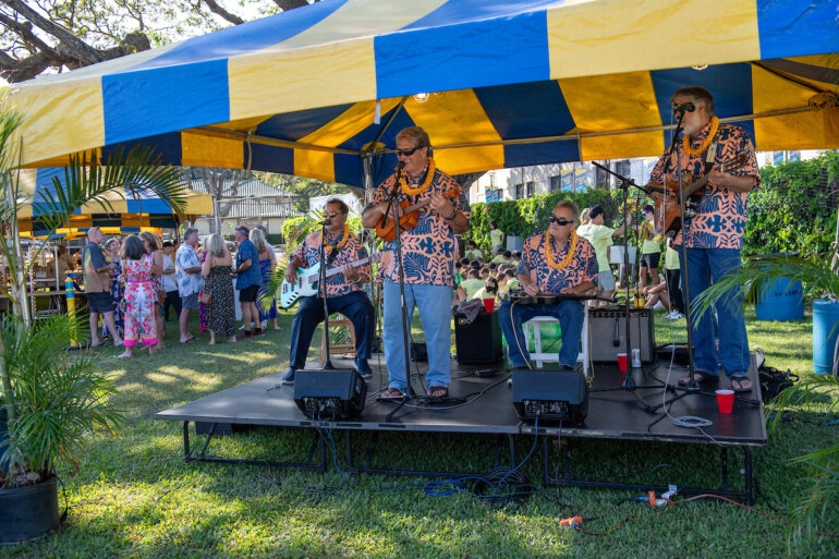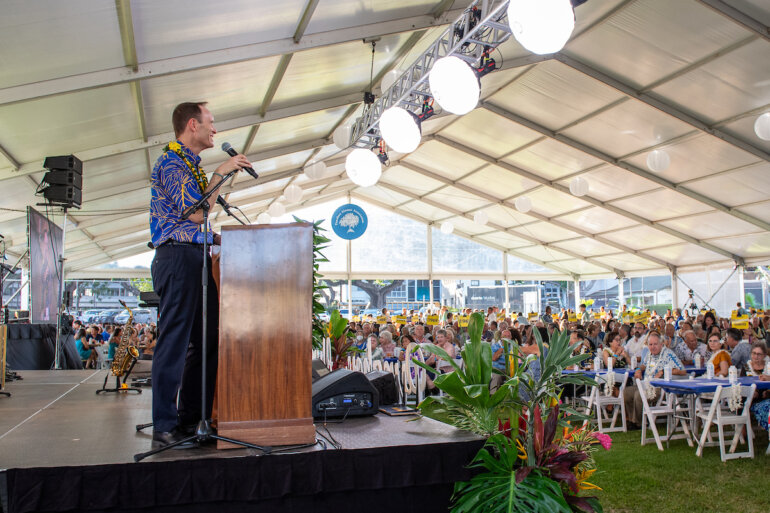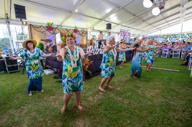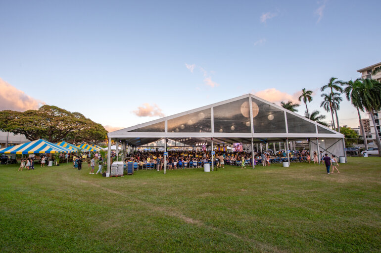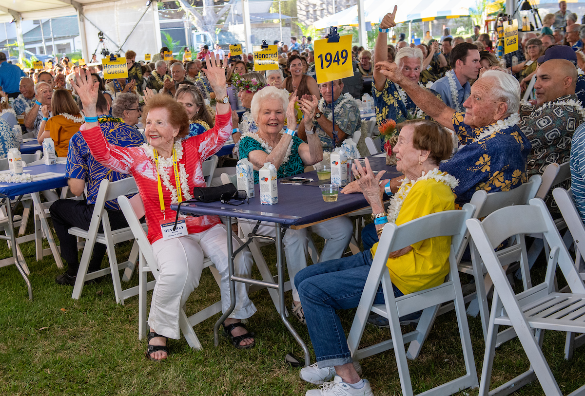 Celebrating milestones! Punahou Alumni from Classes ending in 4 and 9 reunited on campus for an unforgettable Alumni Lū’au. This year, the lū’au was being held on Chamberlain Field as Cooke Library, adjacent to Rice Field, is being renovated into the exciting new Mary Kawena Pukui Learning Commons.
