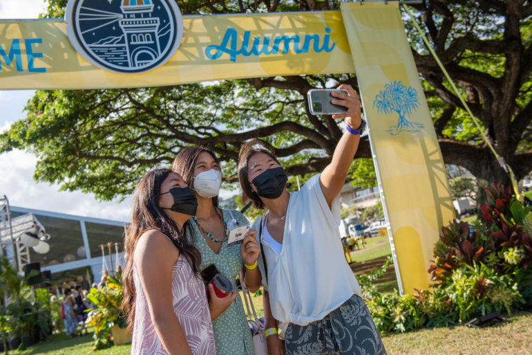 Alumni from Classes ending in 2 and 7 celebrated their milestone reunions and experienced the joy of being together again on campus at the first Alumni Lū‘au held in person since 2019.