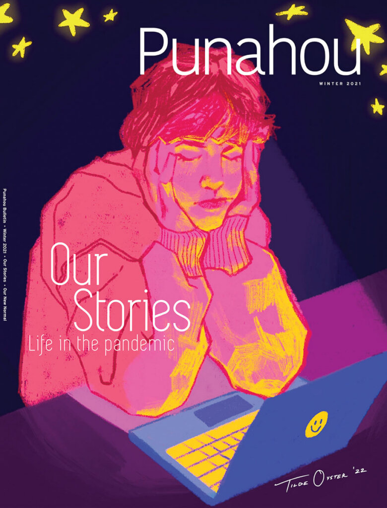 Cox moved to Hawai‘i in 2000 and worked with a range of nonprofits and advertising agencies before joining Punahou’s Communications Department on Jan. 4, 2004. At the time, the Bulletin was a far cry from the publication it is today. Covers tended toward muted colors, interior pages were still largely black and white, and the bold imagery that is now a visual hallmark of the magazine was far less common.