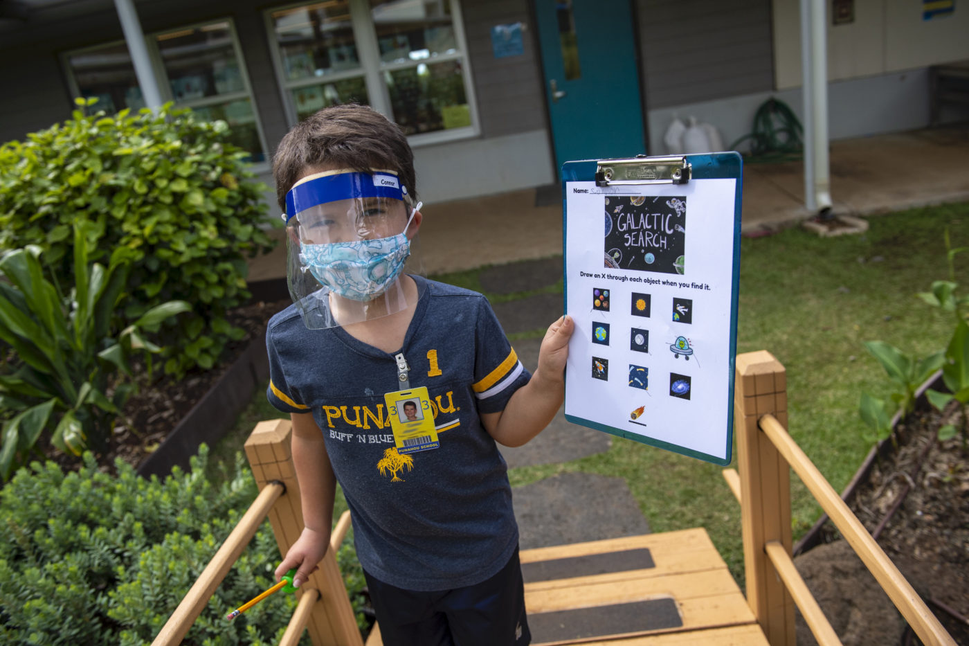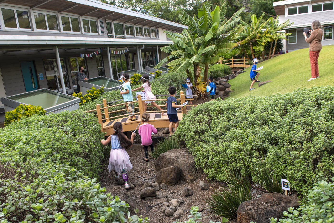 Students in kindergarten through fifth grade participated in a space-themed Carnival Scavenger Hunt during their recess. Juniors Mia Young ’22 and Chev Kodama ’22 helped organize the hunt.
