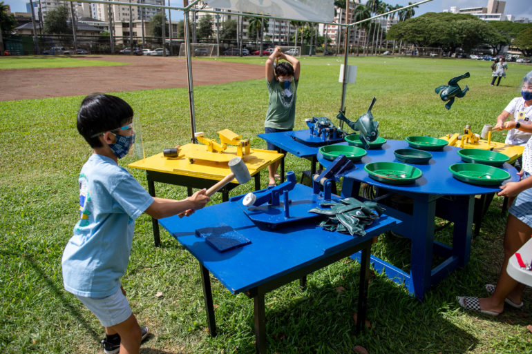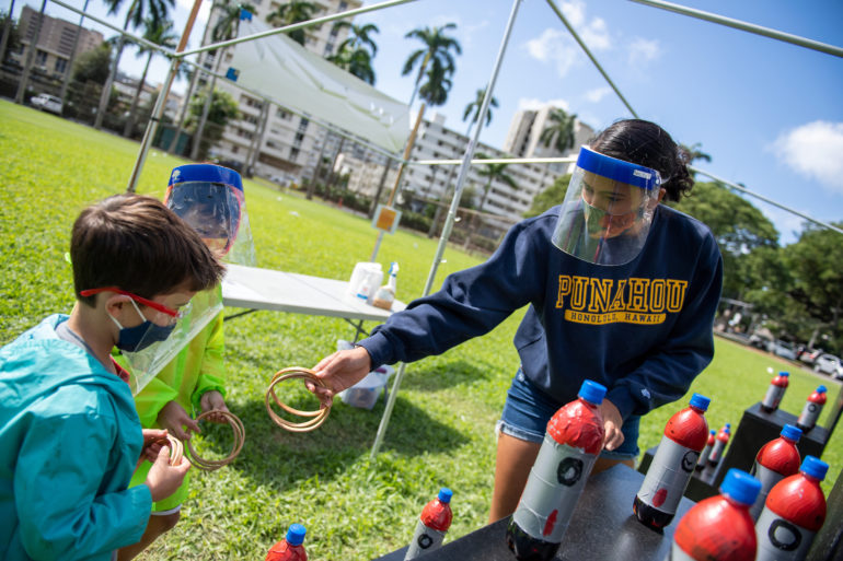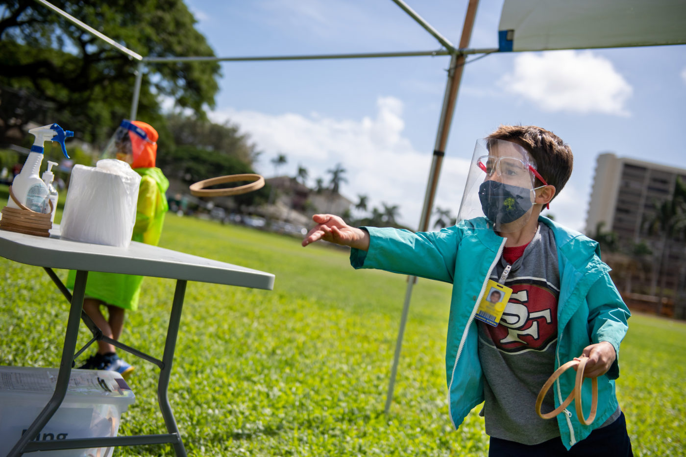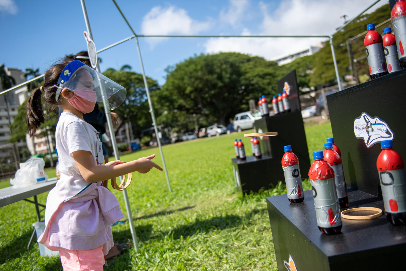 Carnival 2021 is officially underway, with students from kindergarten through grade 5 taking part in all kinds of fun games on Lower Field this week and through Feb. 3. Starting on Monday, children, grouped by cohorts, took part in Basketball, Ring Toss, Golf, Menehune Strongman, Frogs in the Lilypond and Fish Swish. Those learning at home were also able to come to campus – some for the first time this school year – to enjoy “A Carnival Out of This World.”