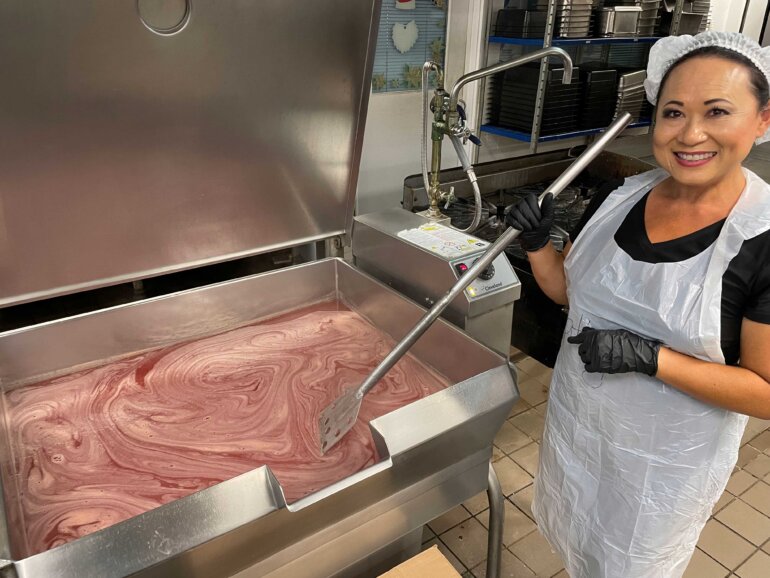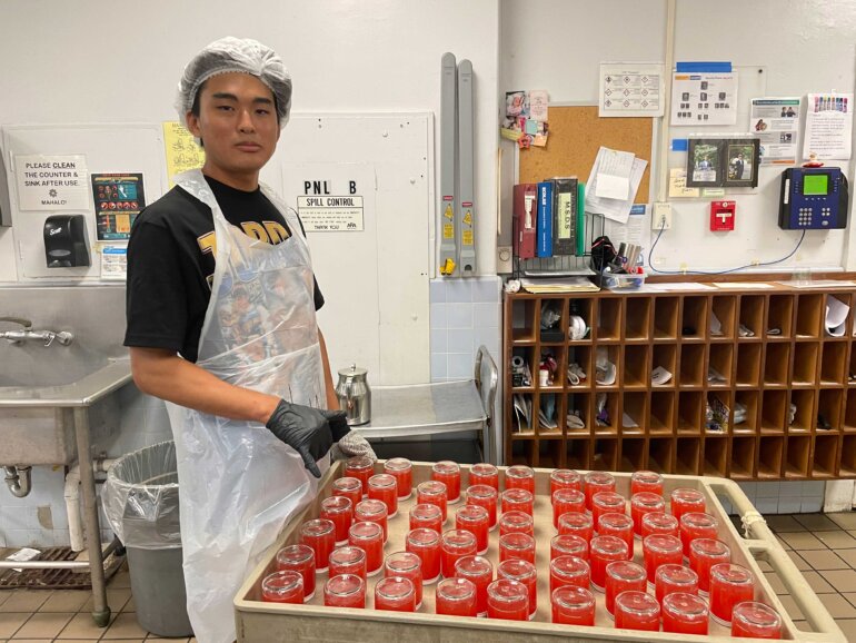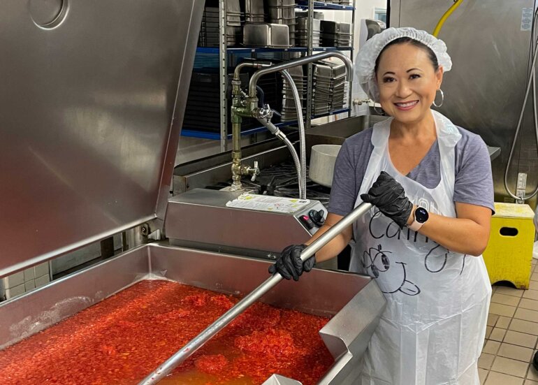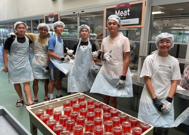 Jams and Jellies planning for Punahou Carnival 2024 began in April 2023, just a few months after Carnival 2023 wrapped up. Student booth chairs McKenzie Arakaki, Kate Hirota, Luke Manago, and Calleigh Sasaki along with Junior parent booth chairs Calvin and Susan Mar, Eric and Cathy Tamura and my husband, Robert and myself, and our team of parent and student volunteers spent our summer days and nights making thousands of jars of jams from scratch. The entire process could not be completed without the help of countless individuals including student volunteers, parent volunteers, Punahou PFA, Punahou Cafeteria staff, and our many generous mango donors.
