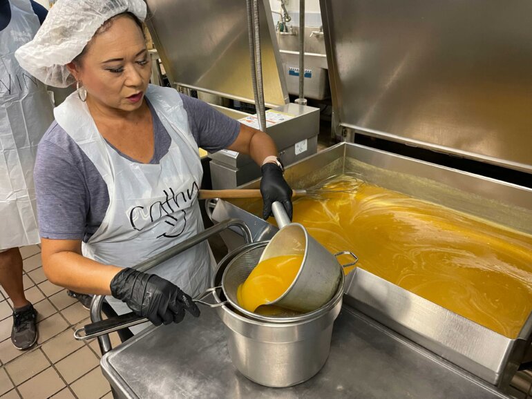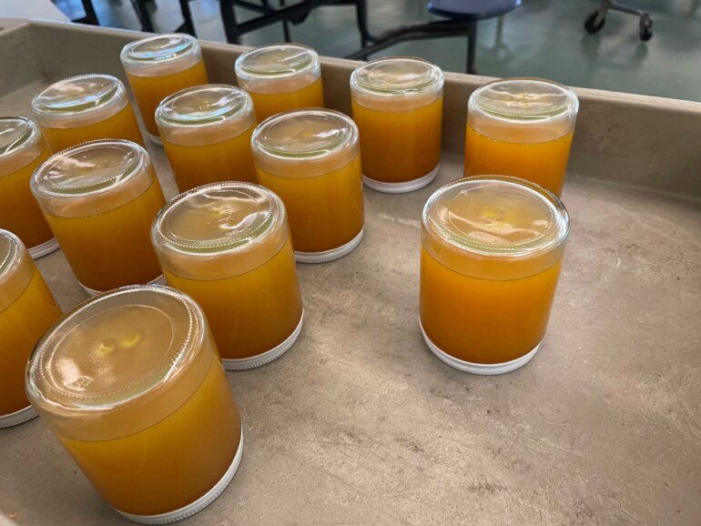 Every year has its challenges and this year it was a lack of two main ingredients – mangoes and chili pepper paste. Many of our usual donors reported having little to no mangoes this year, and the lack of chili pepper paste was so severe it made the local and national headlines. While this impacted our production goals, it also created an opportunity for us to introduce a new jelly to the lineup. We decided on Guava Jelly, inspired from an archived recipe from Carnival 2002. Our test recipe was an instant hit with the student and parent taste testers, and we quickly got started on producing Guava Jelly for Carnival 2024.