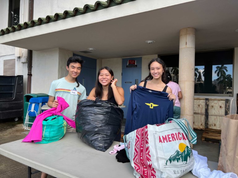 Over the summer, White Elephant (WE) student division heads, Gabbie Gonzales ’24, Colby Kurasaki ’24, Seung Min Ham ’24 and Julia Leong ’24, shifted into gear and worked tirelessly in preparation for the big race. The WE pit crew held numerous donation drives and collected and sorted several thousand pounds of donations given by generous donors within the Punahou community. The student division heads received help from their classmates and parents. Everyone came together for one common goal: to help fund an amazing education and give students, who could not otherwise afford it, a chance to embrace the Punahou experience. Proceeds from White Elephant sales support Punahou’s Financial Aid program.