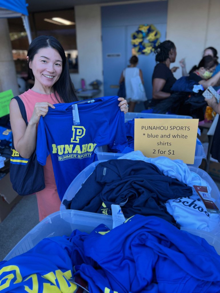 The White Elephant division is made up of five sections: clothing, housewares, toys, books and treasures. Student division heads volunteer alongside parent volunteers. This creates avenues for parents to find meaningful involvement by guiding students and helping them thrive in leadership roles. Both parent and student WE volunteers came together to select items for the annual White Elephant Halloween Sale. They sorted, priced and set up Halloween costumes and decorations, textbooks and Buff ’n Blue attire. Thanks to the very supportive Punahou community, the sale was a huge success!