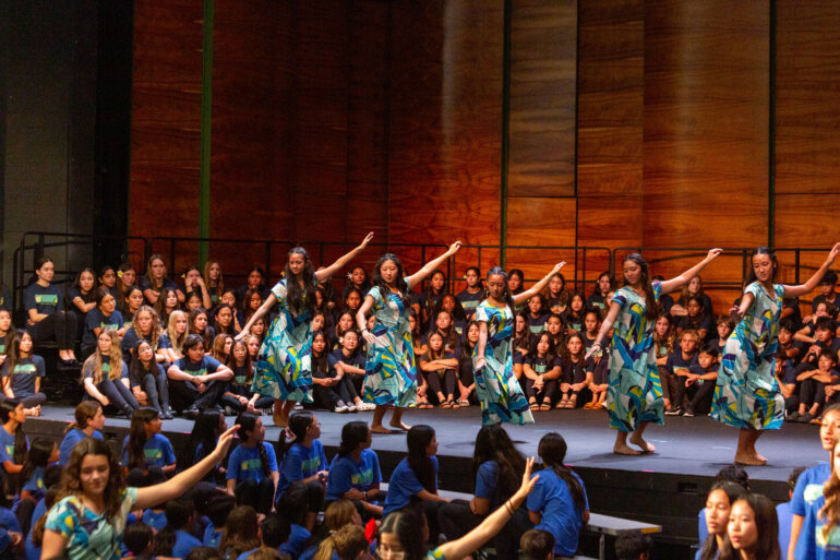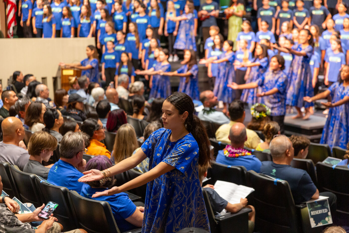 “It was a team effort and deeply meaningful musical collaboration,” says Scanlan. The event was co-led by choir teachers Joanna Habermann, Mia Porreca, John Roberts; Kumu Hula Williams; with musical collaborators including accompanists Linda Asahina, Jenny Choi, Lena Wong and Arlene Koh ’93 on the violin. “We were proud of our community,” Scanlan says. “And proud of all of the hard work that the students put in. We could not be happier with their focus and commitment, as well as the warm support from the audience.”