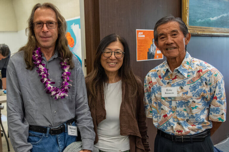 Many artists flew from the West Coast and Neighbor Islands to join their Honolulu-based colleagues in the celebration. Undaunted by wind and rain, both events drew hundreds of admiring visitors, welcomed by President Mike Latham ’86, Hugh Jenkins and Mark Mitsuda ’88 along with Academy Art faculty Tracy Kirchmann and Pete Hansen ’84.