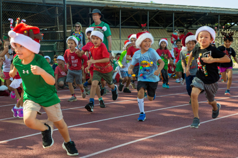 Kindergartners enjoyed a visit to the home of President Mike Latham ’86, then later sang carols across campus. First grade students participated in a jingle bell run during PE class. Academy students handed out hot chocolate in the Academy Quad. Meanwhile, second and fifth graders delighted their families with holiday performances.