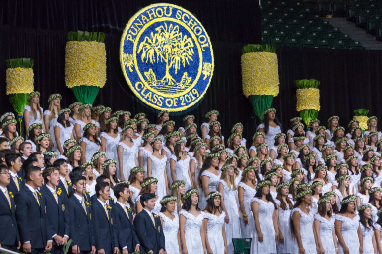 Family, friends and faculty celebrated the Class of 2019’s graduation at Saturday’s Commencement ceremony, which also paid tribute to retiring Punahou President Jim Scott ’70.