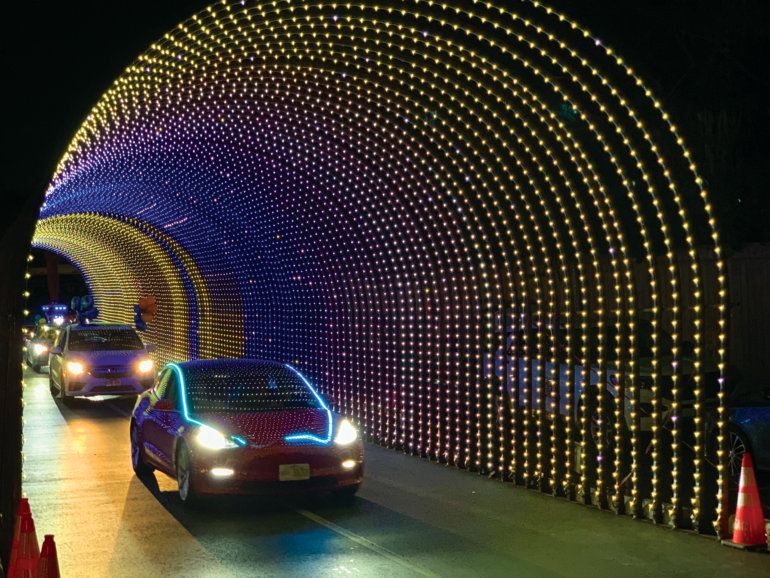 After Commencement, the new graduates and their families drove through a sparkling, 150-foot tunnel of Buff ’n Blue lights, which were constructed for the School by Michael Gangloff and the Show Aloha Challenge Foundation for $1. Gangloff, whose daughter, Amy, graduated from Punahou in 2013, also constructed a special trailer to haul the equipment to Punahou, footing the cost himself. The tunnel, which was programmed in different patterns to be synchronized to Punahou pep rally songs, was built the night before Commencement to minimize the impact on campus and to surprise the graduates. After driving through the tunnel in front of the Kosasa Community, the School’s newest alumni were greeted by cheering faculty and staff, waving pompoms and signs. A fitting finale!