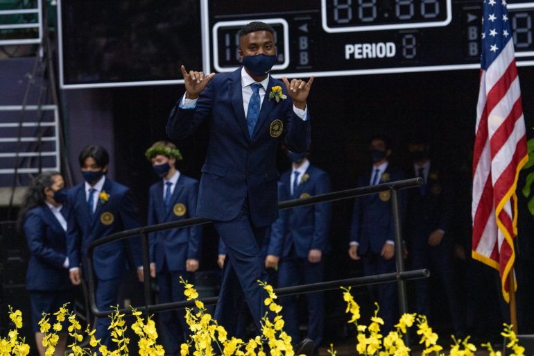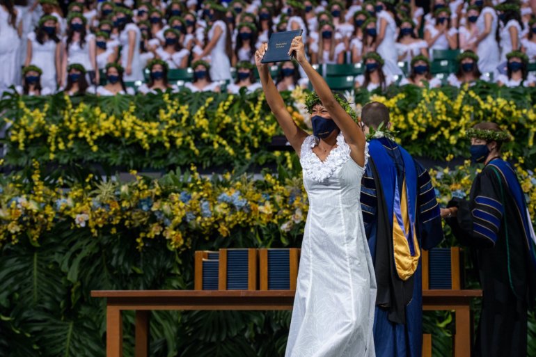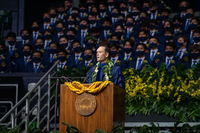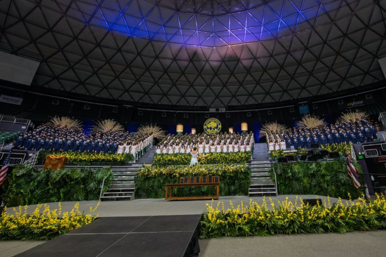 Members of this year’s graduating class received their diplomas Saturday at UH’s Stan Sheriff Center in a lively Commencement celebration. The evening was filled with uplifting speeches, a beautiful hula and joyous music performed by students.