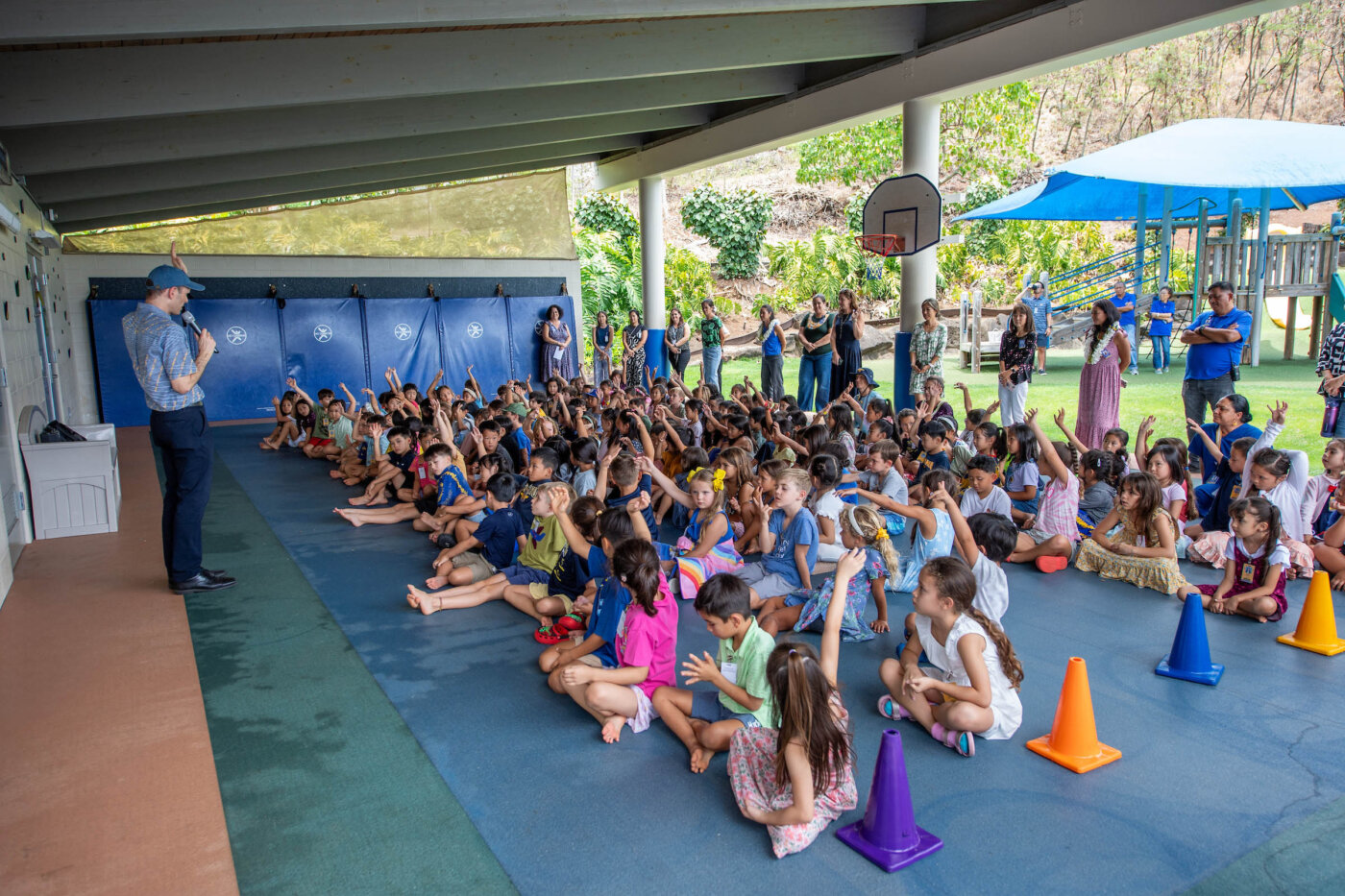 The excitement carried into the afternoon with a special Keiki Convocation for first graders, held in the Omidyar K – 1 Neighborhood.