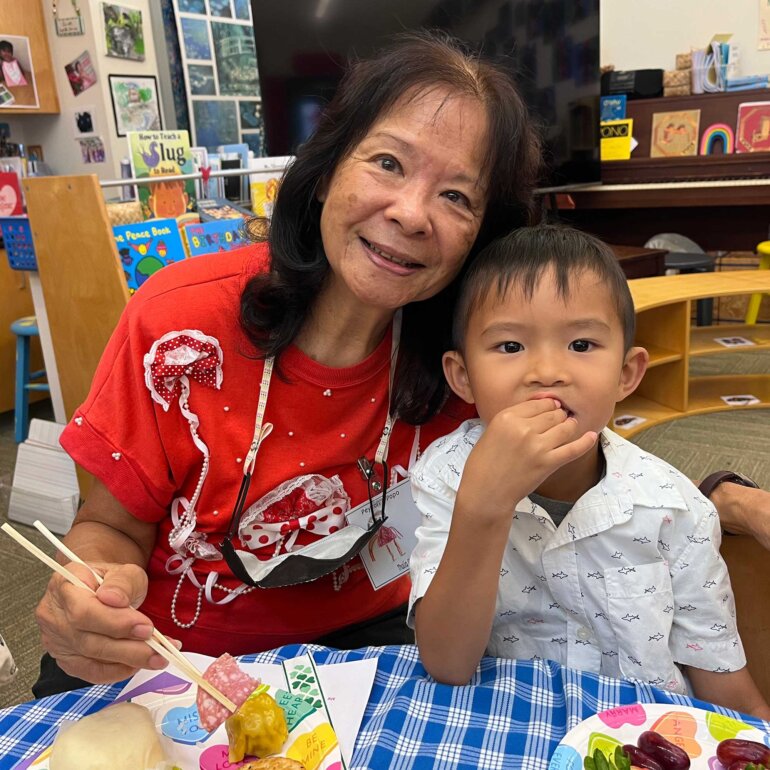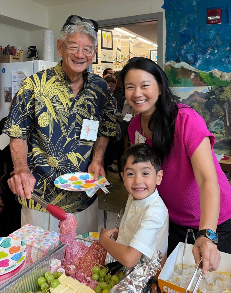 Kūpuna Week at Punahou is a special occasion in the kindergarten community that recognizes and celebrates our respected grandparents, ancestors and elders and honors where we come from. This year, kindergarten students honored their kūpuna on special days of the week. In Donna Reid-Hayes’ ’78 kindergarten class, we celebrated Kūpuna Day on February 14 – Valentine’s Day – a special mashup of holidays that served as a wonderful opportunity for our children to express gratitude, love and appreciation for the wisdom, guidance and unconditional love that their kūpuna provide.