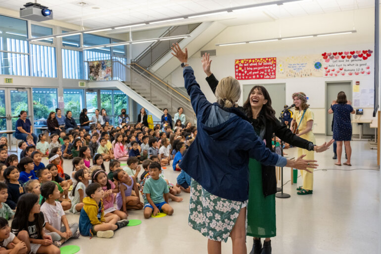 This spring, Punahou’s youngest learners welcomed back acclaimed children’s musician and author Emily Arrow for a joyful week of creativity and song. Working with kindergarten and first grade students, Arrow brought stories to life through music, blending literacy and performance in an engaging, hands-on experience.