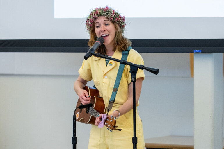 Arrow’s return to campus builds on her previous visits, continuing a meaningful partnership that nurtures a love of reading, writing and artistic expression. Her work encourages students to see themselves as storytellers, showing that books can leap off the page and into song.