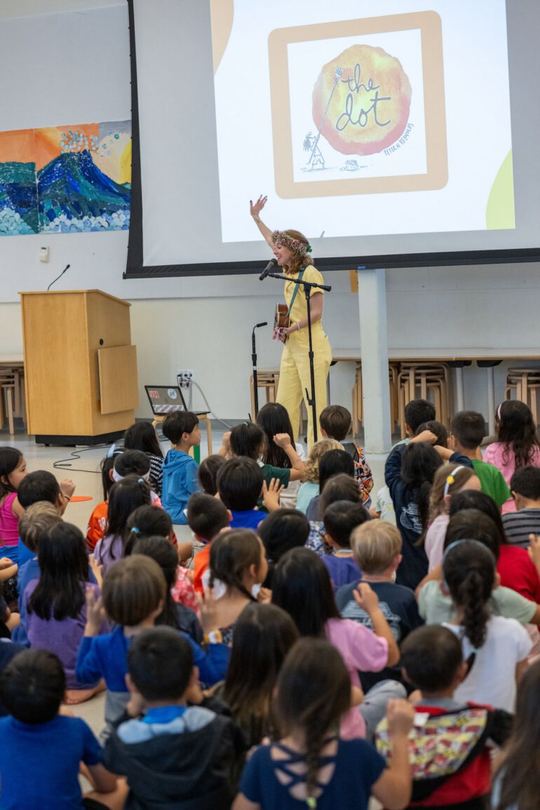 During her visit, students gathered in the Omidyar Neighborhood for a lively mini concert, where Arrow performed selections inspired by beloved children’s books. Classrooms then transformed into songwriting studios as students collaborated with her to create original songs based on their favorite stories and themes.