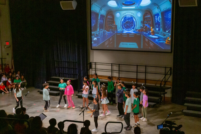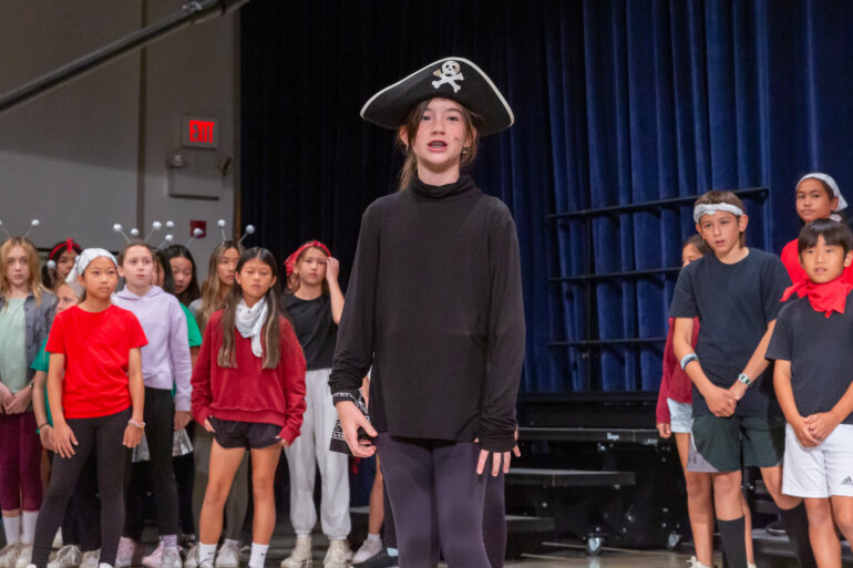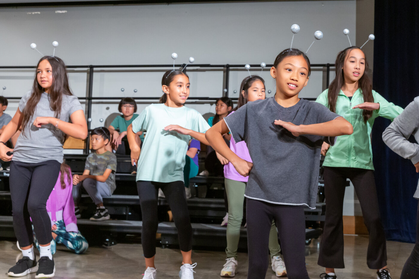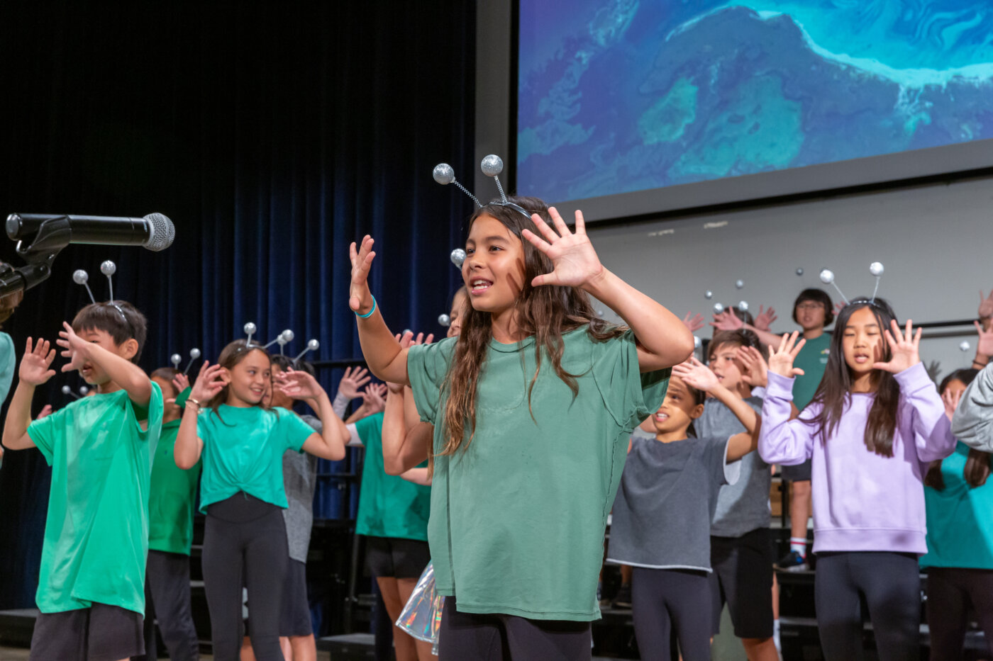 Fifth graders blasted off with a lively performance of “Space Pirates” on Friday, March 7, in Twigg-Smith Pavilion. After dedicating recesses to practice, they brought the musical play to life, where a school field trip to the museum lands students in space to meet aliens and space pirates.