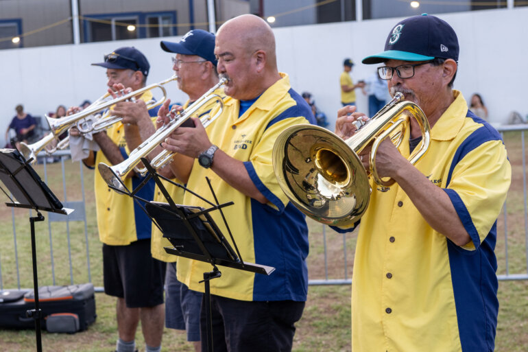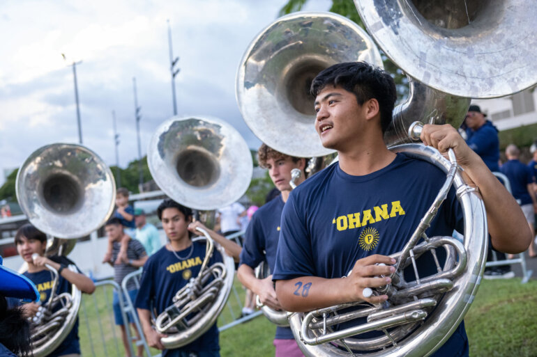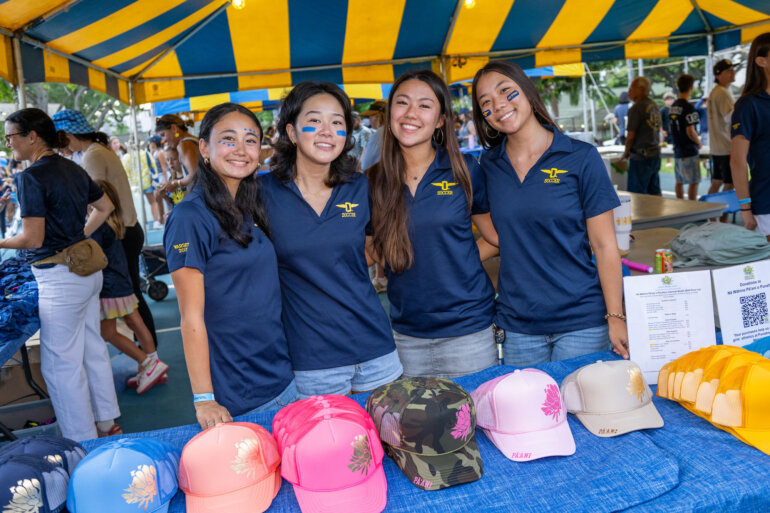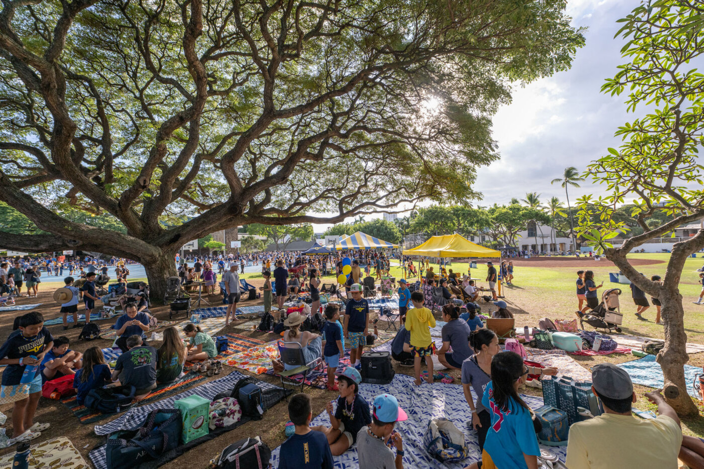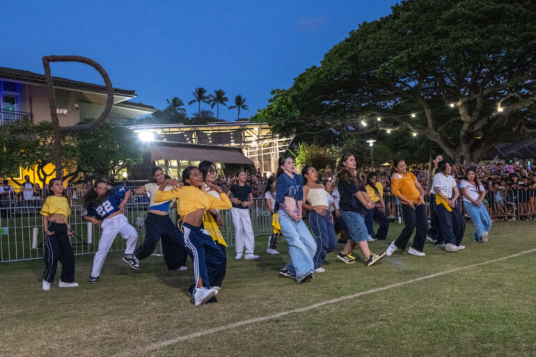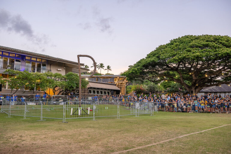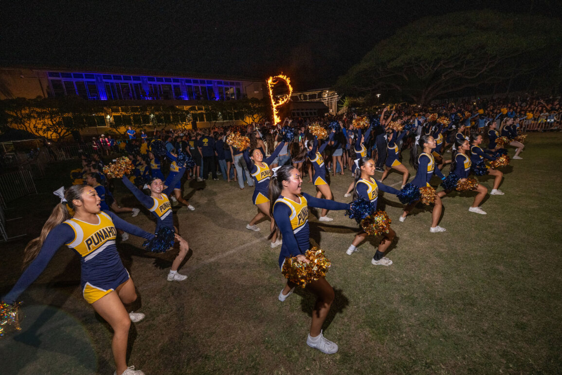 The event featured live music, food booths, games and activities, with performances by the Oahu College Band, Punahou Marching Band, Dance Teams and cheerleaders. President Dr. Michael Latham and Boy Eldredge welcomed attendees before the night’s highlight – the lighting of the 20-foot wooden “P”.