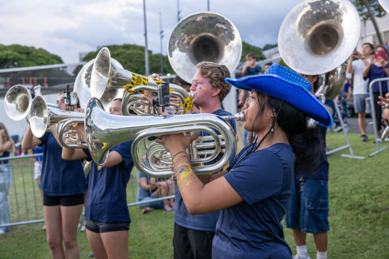 As it illuminated the field, cheers erupted, marking the symbolic centerpiece of the School’s fall spirit season and reaffirming a beloved Punahou tradition that continues to unite generations.