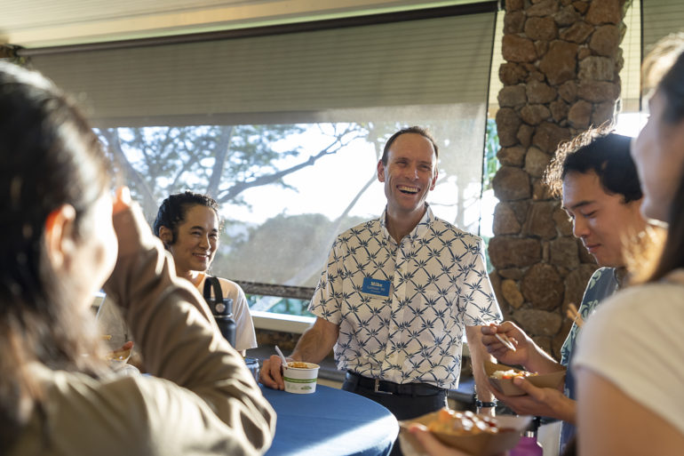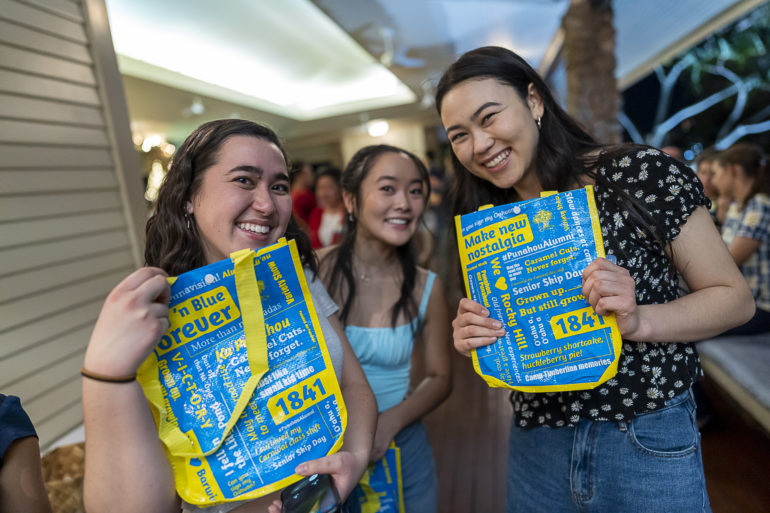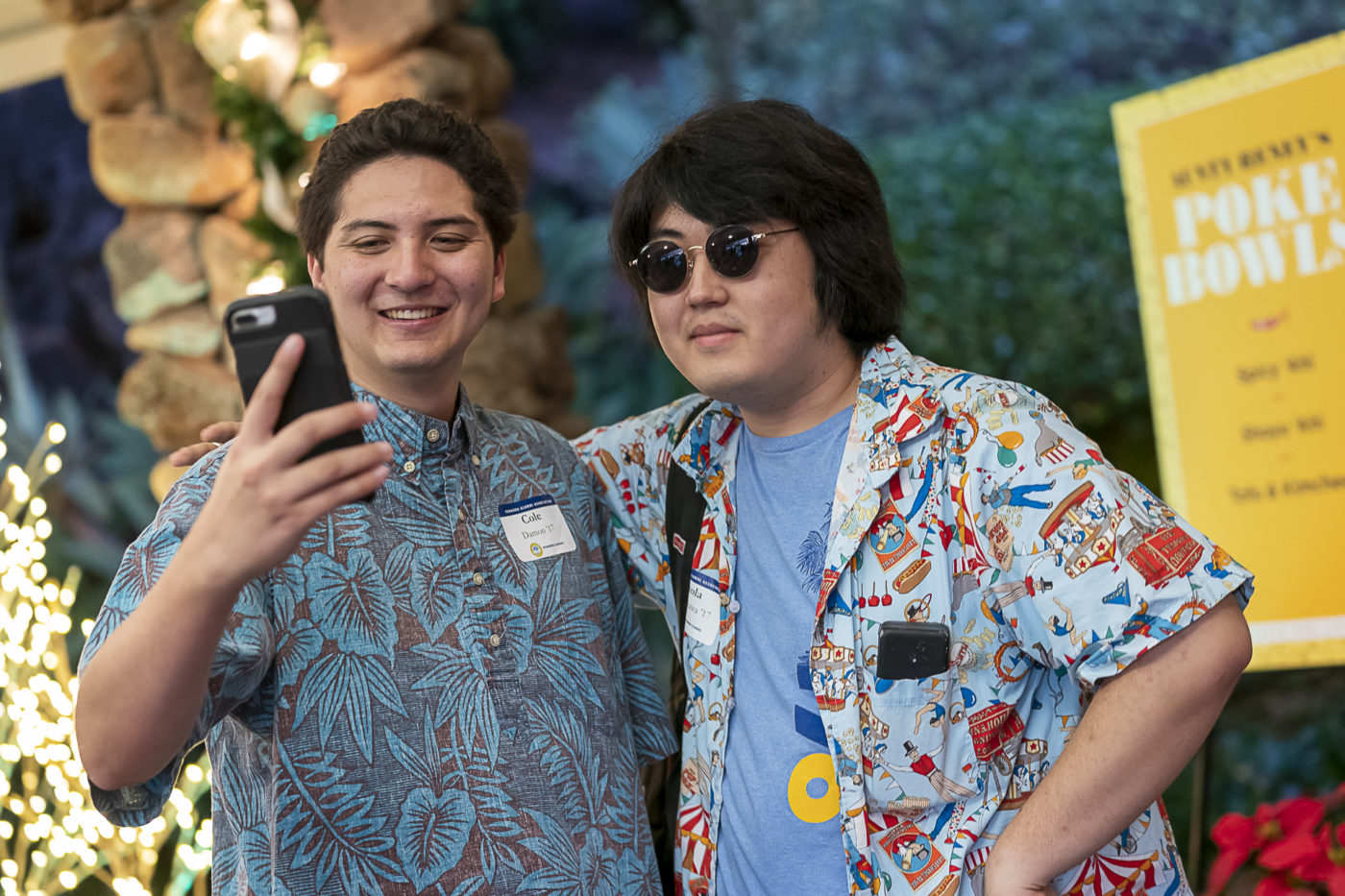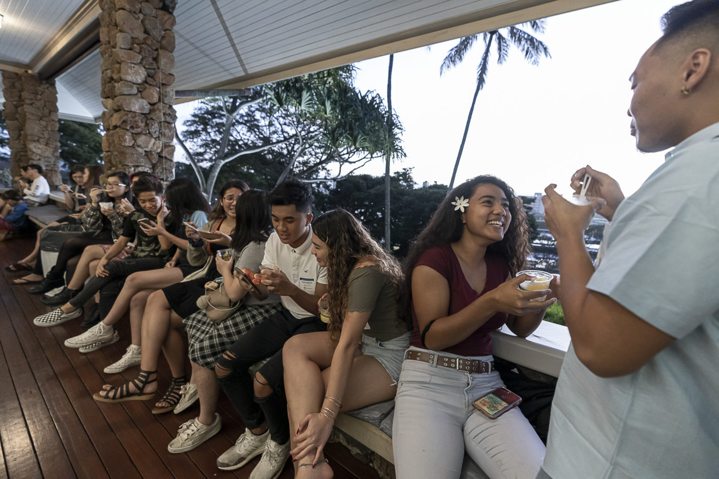 Punahou’s college-aged alumni – those in the Classes of 2016 – 2019 – were welcomed home with their favorite food and the company of friends at the annual Mingle and Jingle event held at the President’s Pavilion.