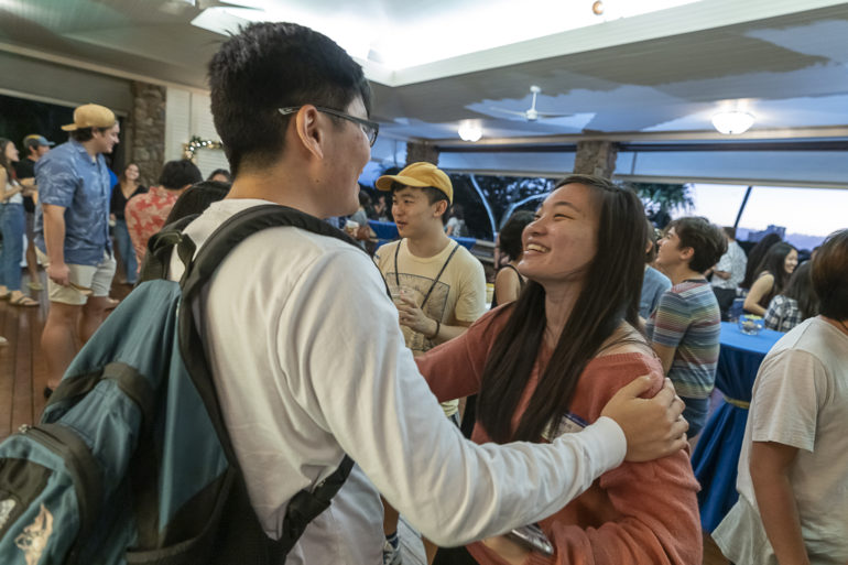 Many in the crowd of 150 are on holiday break from colleges and universities on the mainland and abroad, and they were eager to share their experiences and catch up with old friends. It was also the first chance for many to meet new President Mike Latham ’86.