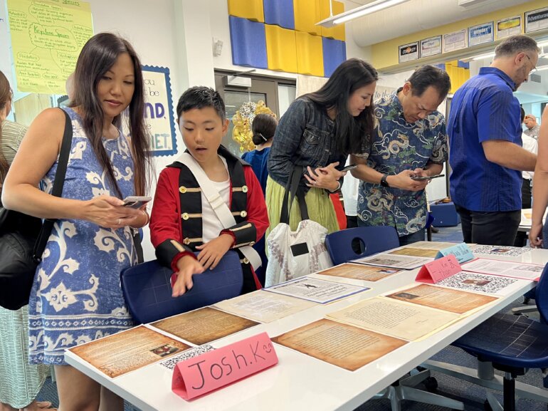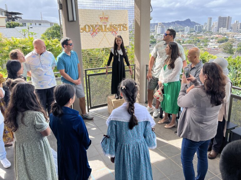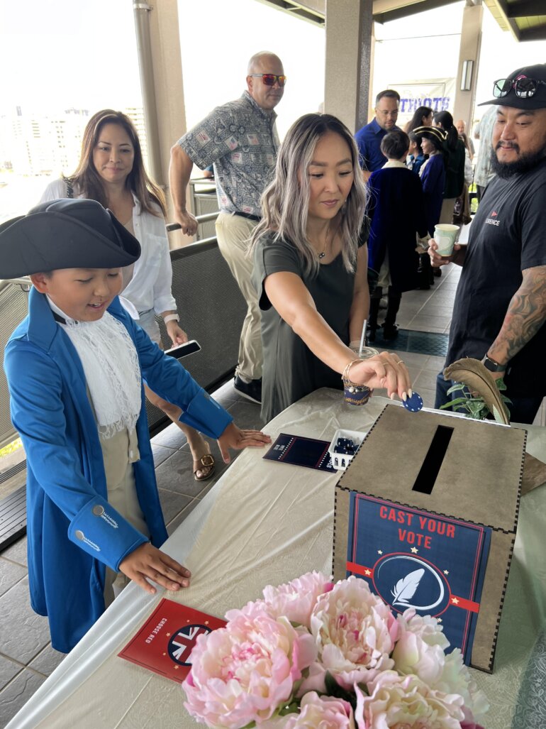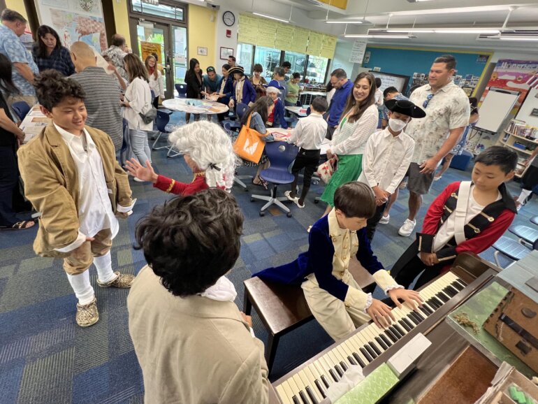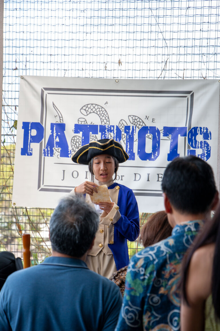 Hear ye, hear ye! Fifth graders in Shanel Nishimura’s humanities class brought history to life with a spirited reenactment from the American Revolutionary period. Dressed in period costumes, students embodied the roles of Loyalists and Patriots, demonstrating their public speaking and persuasion skills in a lively debate, much to the delight of their parents in attendance.