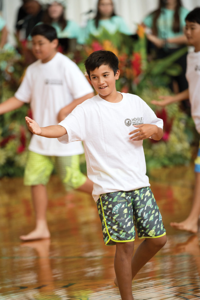 Students in kindergarten through grade 5 celebrated their greatest connection to one another: that they all share the same home. The theme, “Ku‘u Kulāiwi Aloha,” proudly honored Hawai‘i through stories and mele recounting the beauty of their beloved island home.