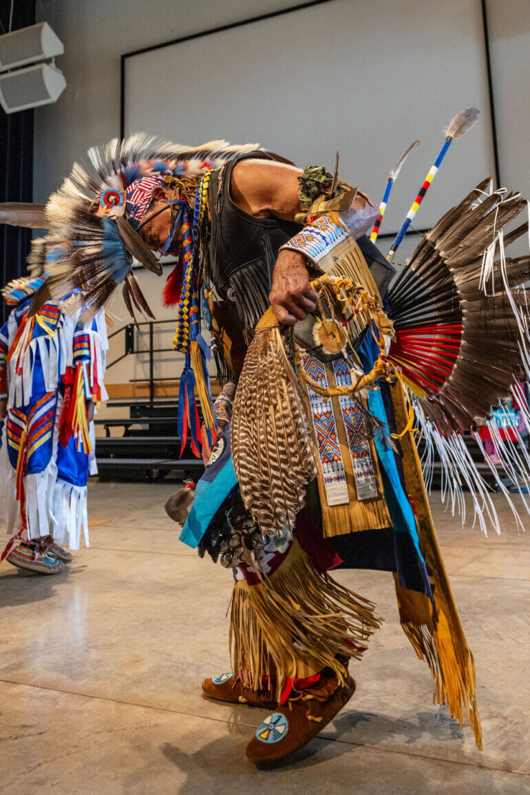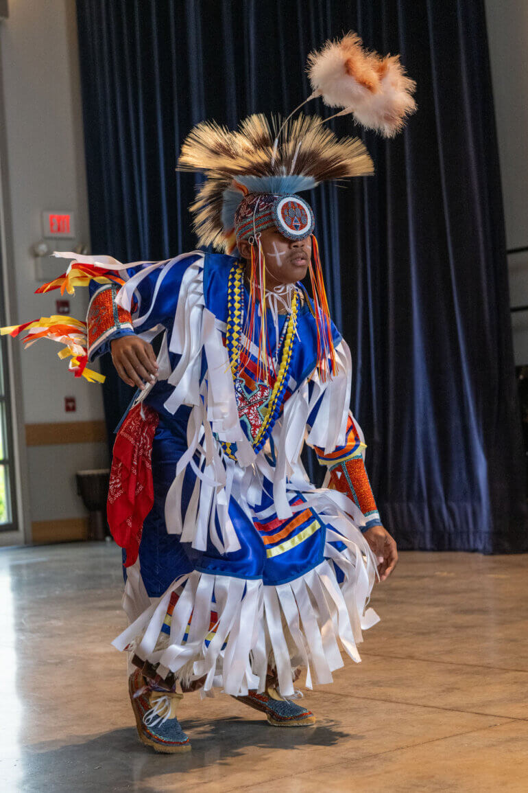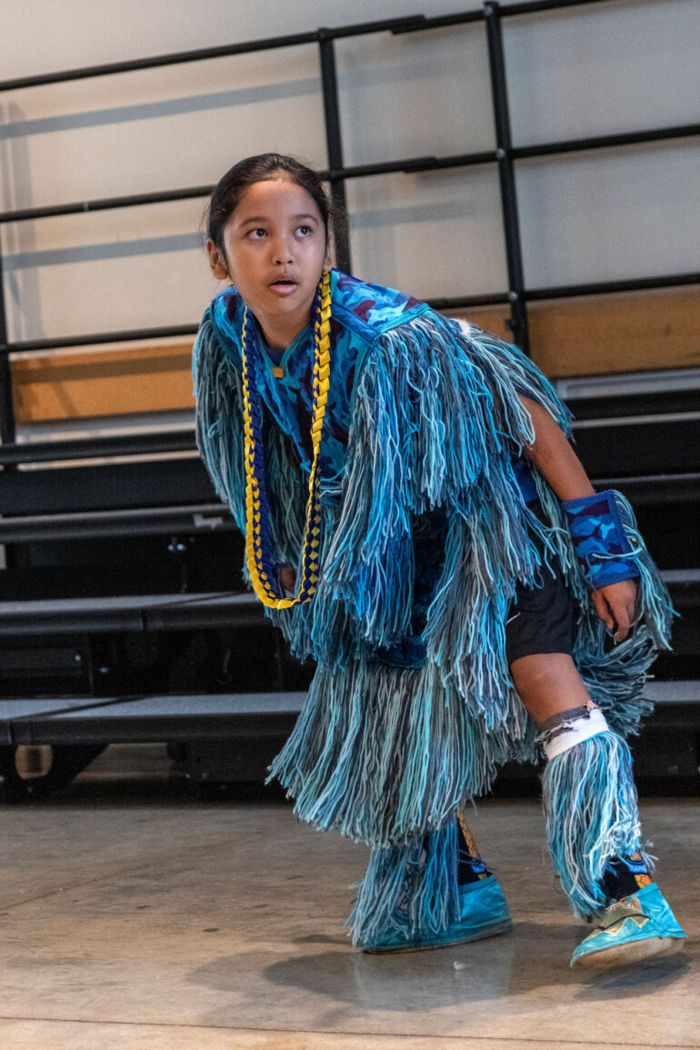In the weeks leading up to the visit, students prepared in both their classrooms and music lessons. Under the guidance of Dr. Karen Drozd, Music Specialist for Grades 2 – 5, students explored the purpose and cultural significance of intertribal Powwow dances and songs. They learned that songs and dances specific to individual tribal nations are considered private and often sacred, and therefore are not shared in Powwow settings. Instead, intertribal dances – many created within the last 120 years – are performed to bring communities together. Fourth graders also practiced flute melodies on the recorder, performed Orff arrangements and studied songs commonly heard at Powwows.
