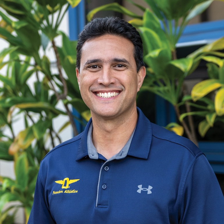 A lifelong learner and athlete, Phil Kimi ’97 has found a unique way to connect his love of math, sports and community. After graduating from Punahou, he earned a bachelor’s degree in Business Economics with a minor in Accounting from UCLA, followed by a master’s in Education from Chaminade University and a master’s in Sports Psychology from California Southern University. Today, Kimi teaches seventh-grade math and serves as a basketball and cross-country coach, as well as Math Club advisor. Whether in the classroom or on the court, he focuses on helping students grow through creative problem solving, connection and play. Outside of school, he enjoys spending time with his wife and three daughters and playing basketball whenever he can.