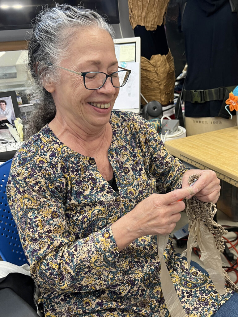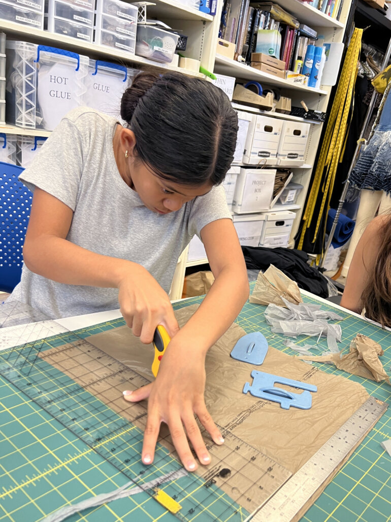 We have a staff of three in the costume shop so none of this would be possible without volunteers. So far, we have had 30 adult volunteers of all skill levels who come from Punahou staff, alumni, parents of actors in the production, and the community. We have open shop hours on Wednesdays for students to volunteer as well, and we have had 14 students from both the middle school and the Academy do costume work for this show. One longtime student volunteer, Riyo Williams ’25, is including the costume she’s designing in her AP Art portfolio. We are so happy to provide students interested in design with opportunities as they develop their skills and interest in theatre.
