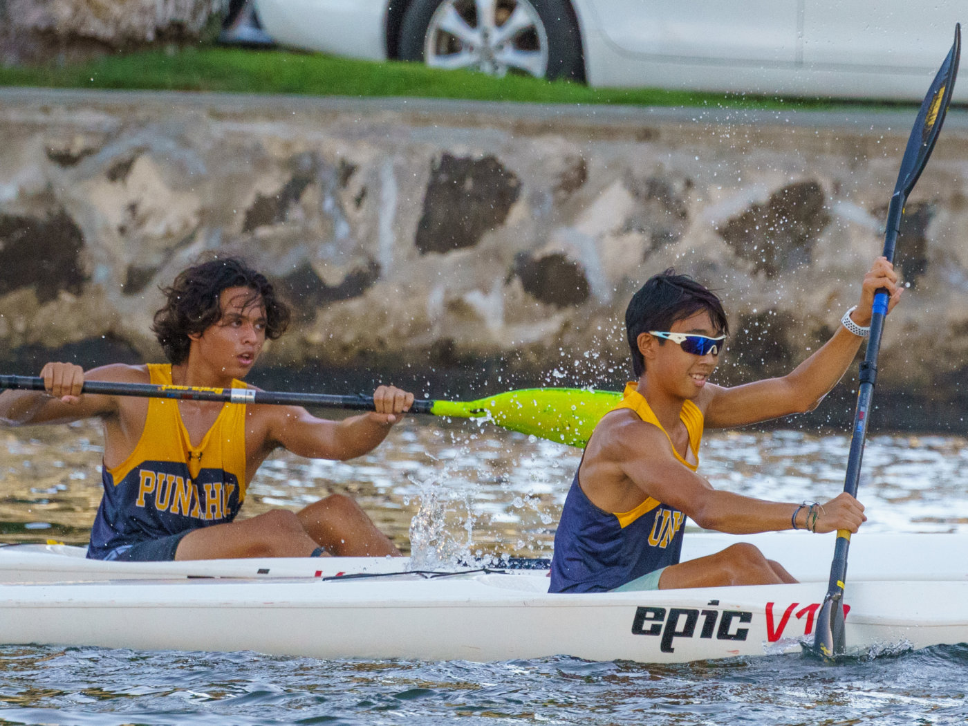 Congratulations to the Punahou Junior Varsity Kayaking Team, who won both the Boys and Girls ILH Championships at the Ala Wai on Saturday. The fall races included 250 meter sprints and 2,000 meter long distance races. Team championships are determined by combining winners in various timed heats for both distances.