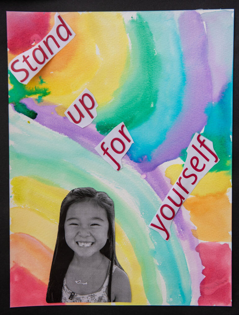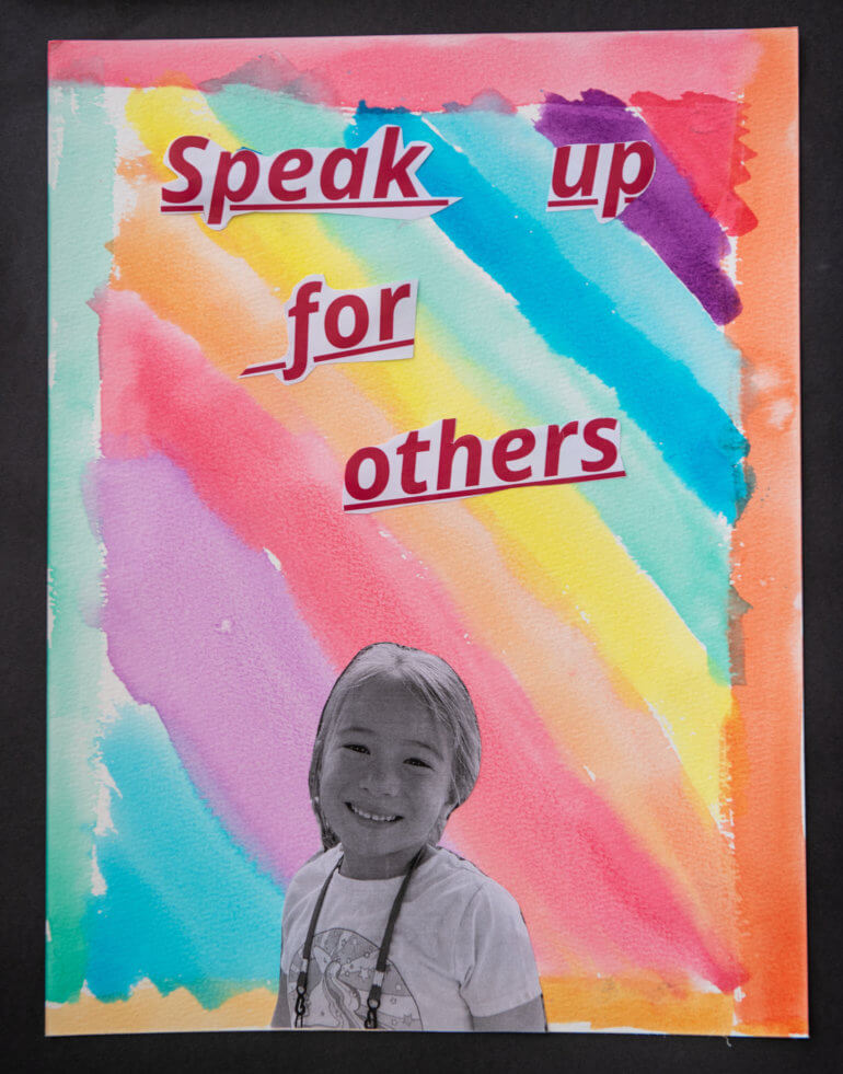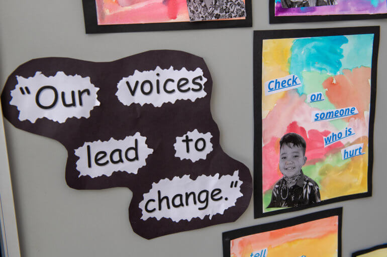 Their voices and art were showcased in a hallway exhibit in the Omidyar K – 1 Neighborhood. Ideas included sticking up for oneself and others and getting help from trusted adults.