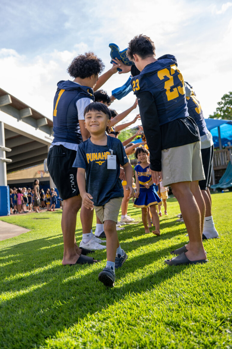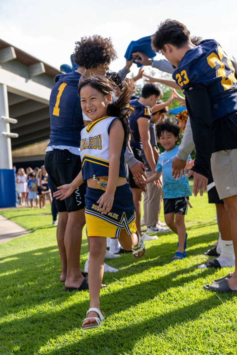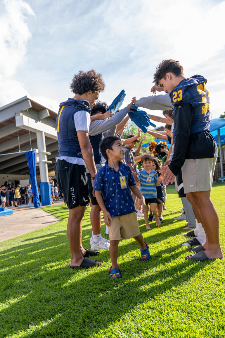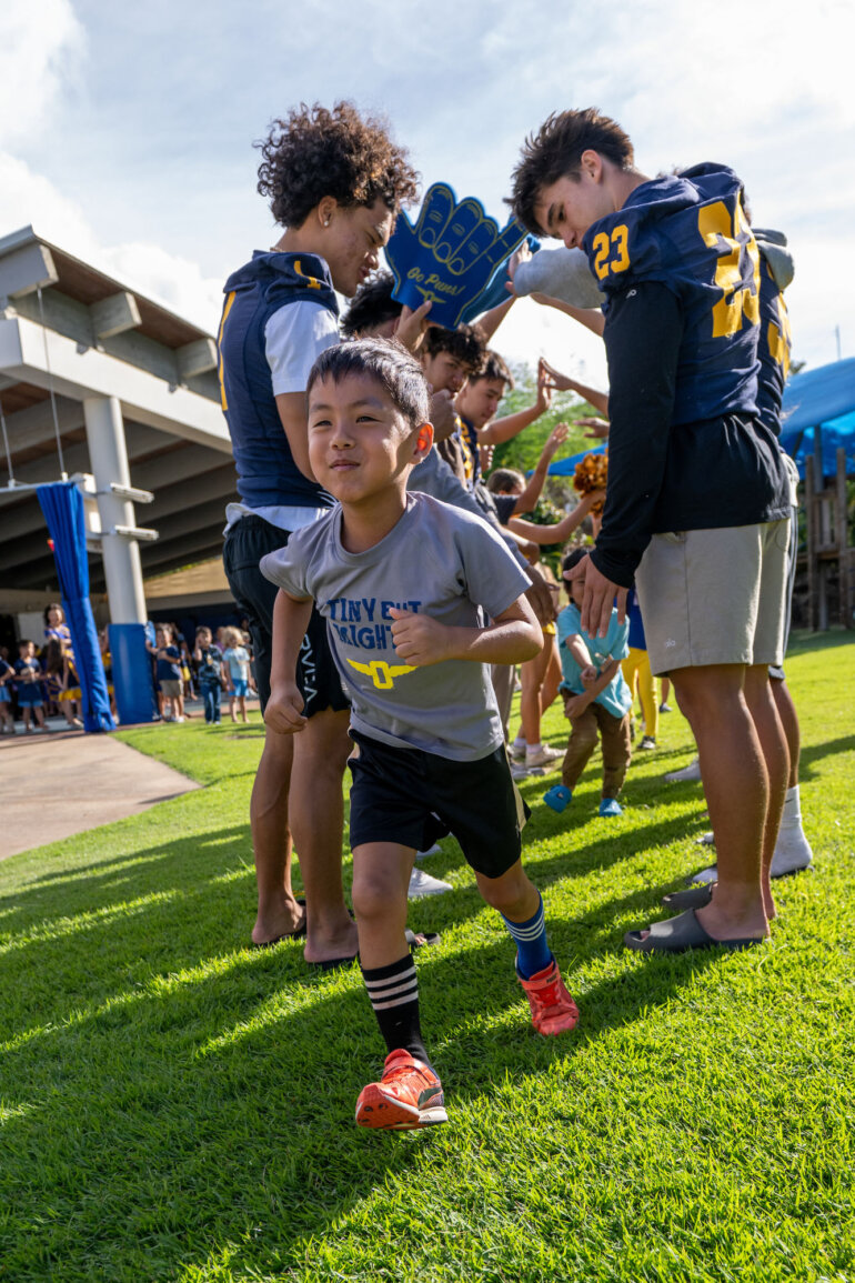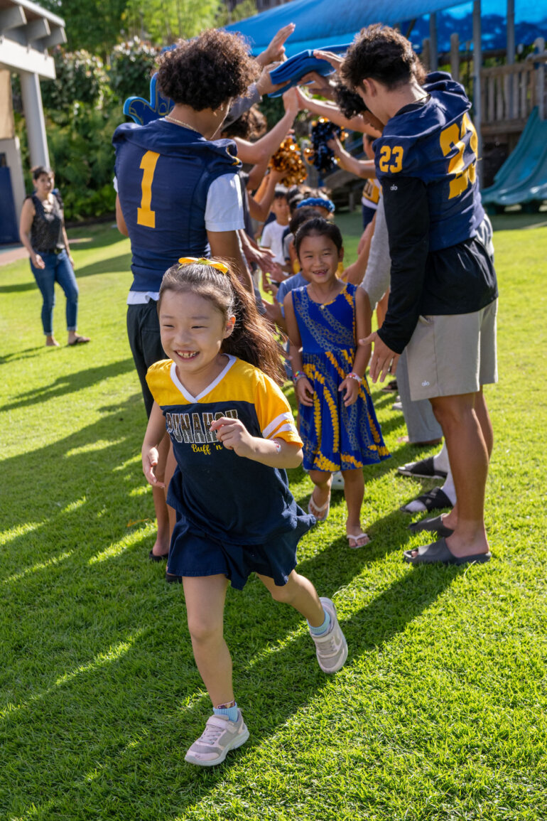 With cheers, claps and big smiles, kindergarten and grade 1 students filled the Omidyar K – 1 Neighborhood with joy at Friday’s pep rally. Their excitement was contagious, showing that Punahou spirit shines brightly – even in our youngest Buff ’n Blue.