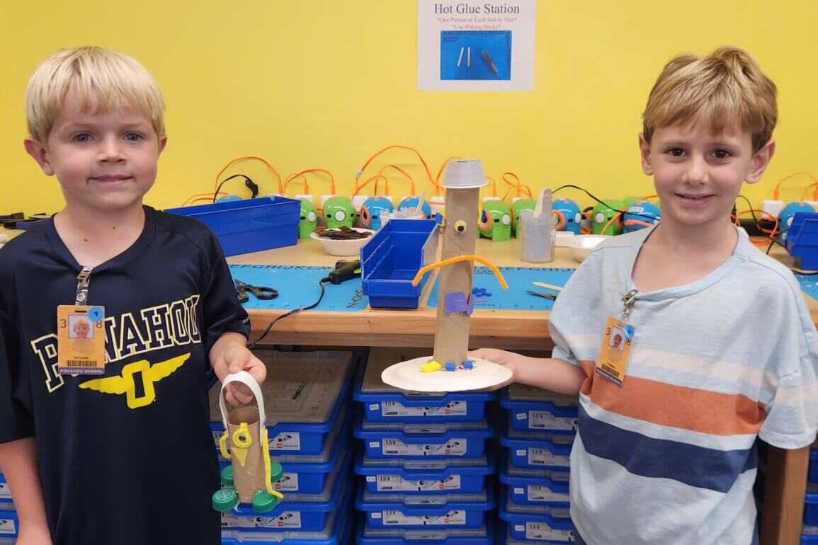 Kindergartners in Leni Nakao-Yamada’s class recently brought a storybook to life in their Design, Technology and Engineering (DTE) lesson with Liz Castillo and Danette Kobayashi. Inspired by My Monster and Me by Nadiya Hussain – a touching story about a little boy whose “worry monster” follows him everywhere he goes, students explored how creativity, engineering and fabrication can help express big emotions.