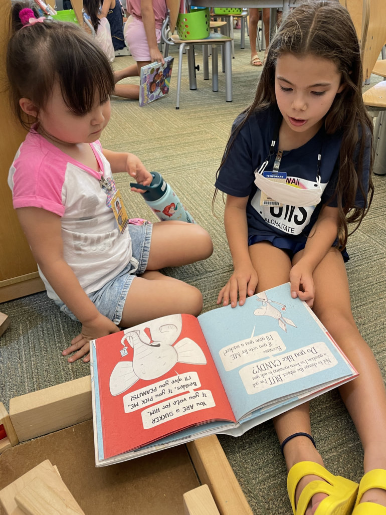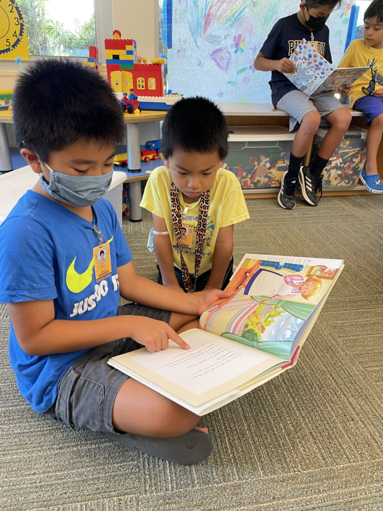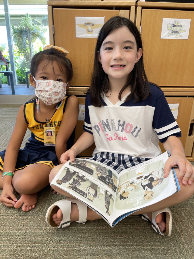 Kindergartners in Galen Arakawa’s ’09 class were delighted to welcome Jerusha Hagen ’90 Tabori’s third graders to the Omidyar K-1 Neighborhood to read, play games and get to know each other.