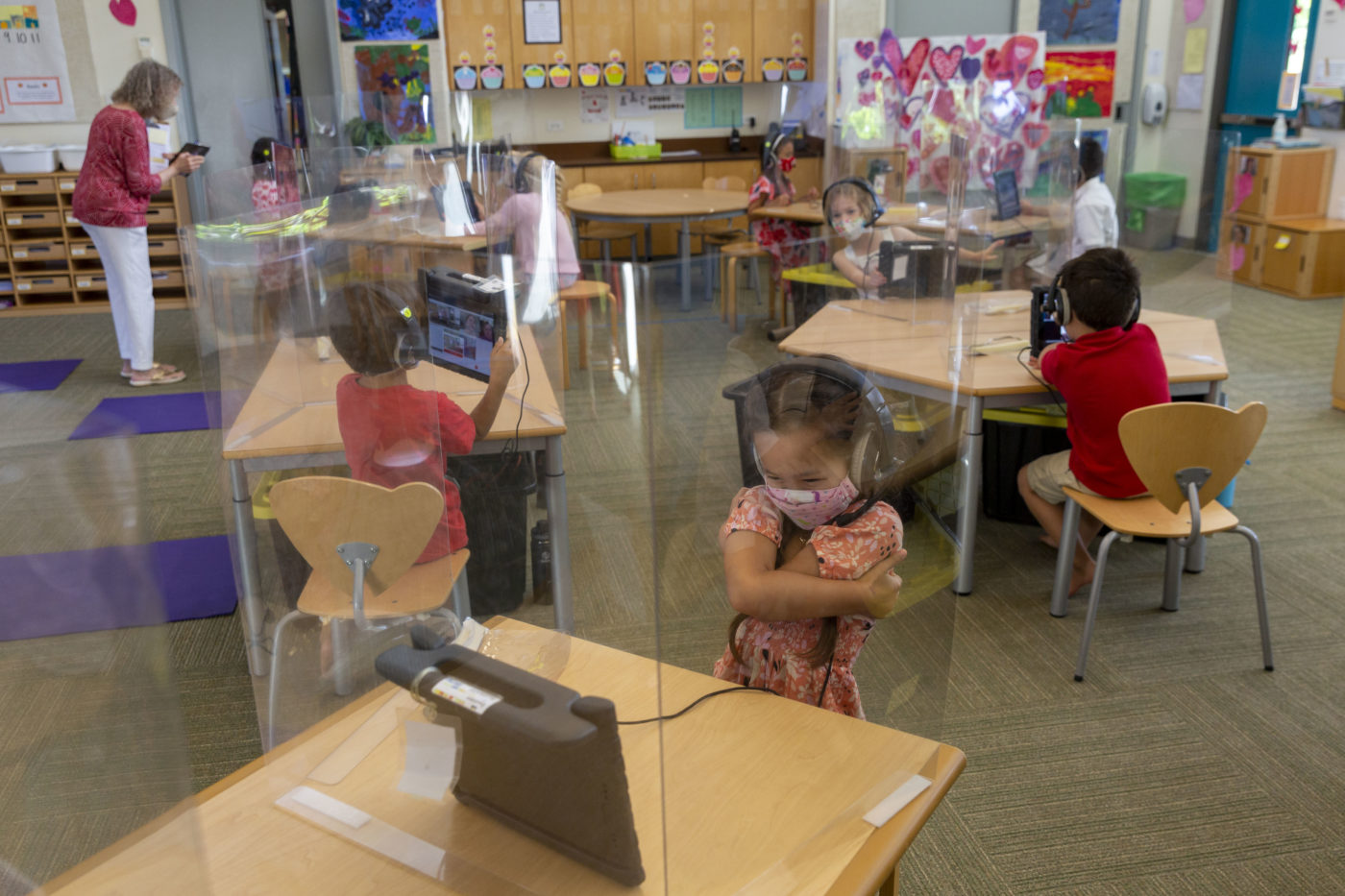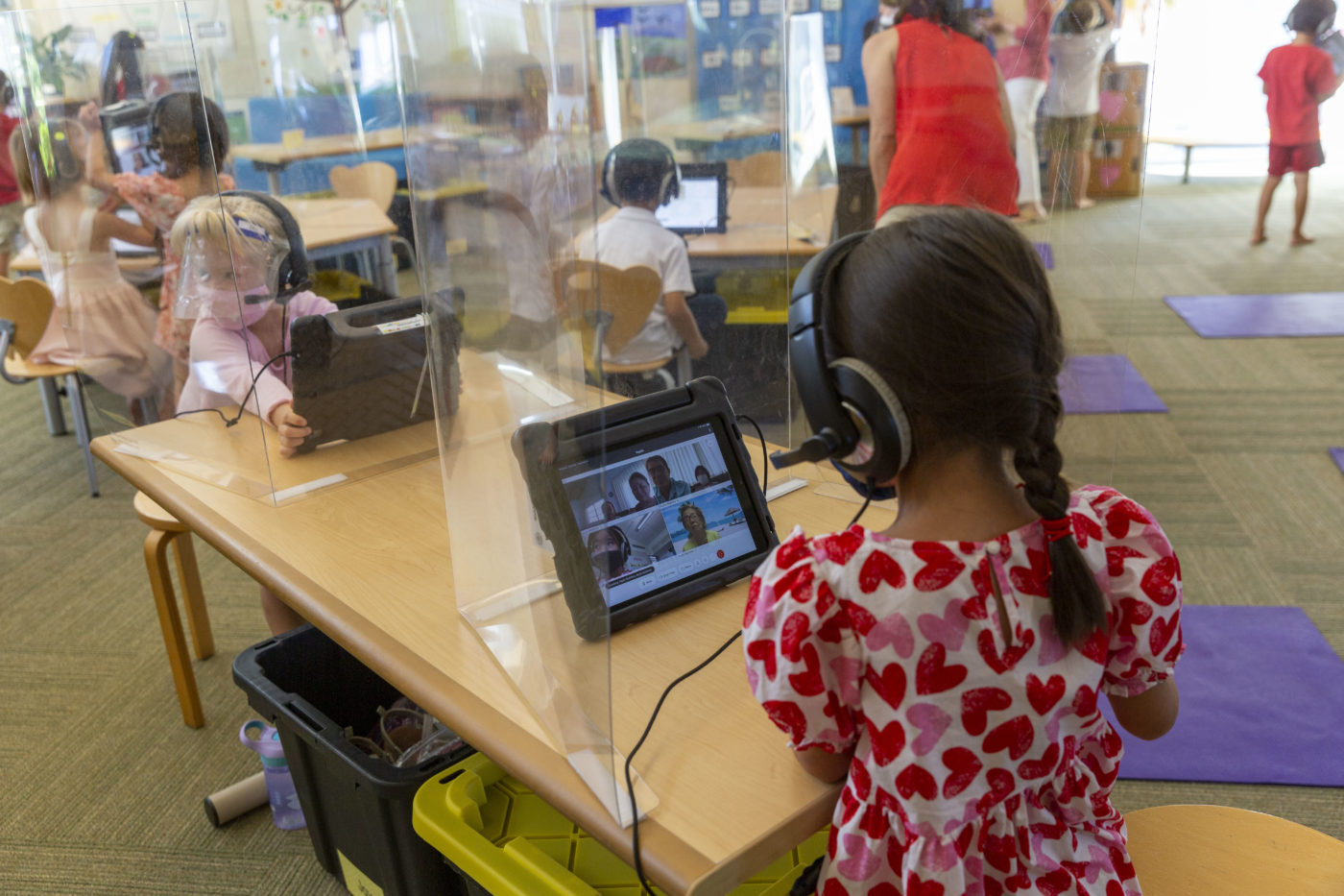 Kindergartners continued the annual heartwarming tradition of celebrating their grandparents during the virtual Kūpuna Day celebrations, which took place over two weeks. Each cohort met with their grandparents over Webex for a special presentation of poems and a video of recorded songs. Afterwards, students were eager to give their kūpuna a tour of the classroom on their individual iPads. Painted hearts and decorations, created by the students who were dressed in pink, red and white for the occasion, also added to the festivities.