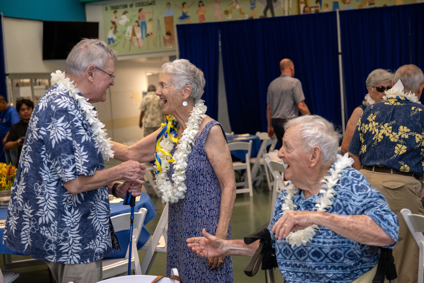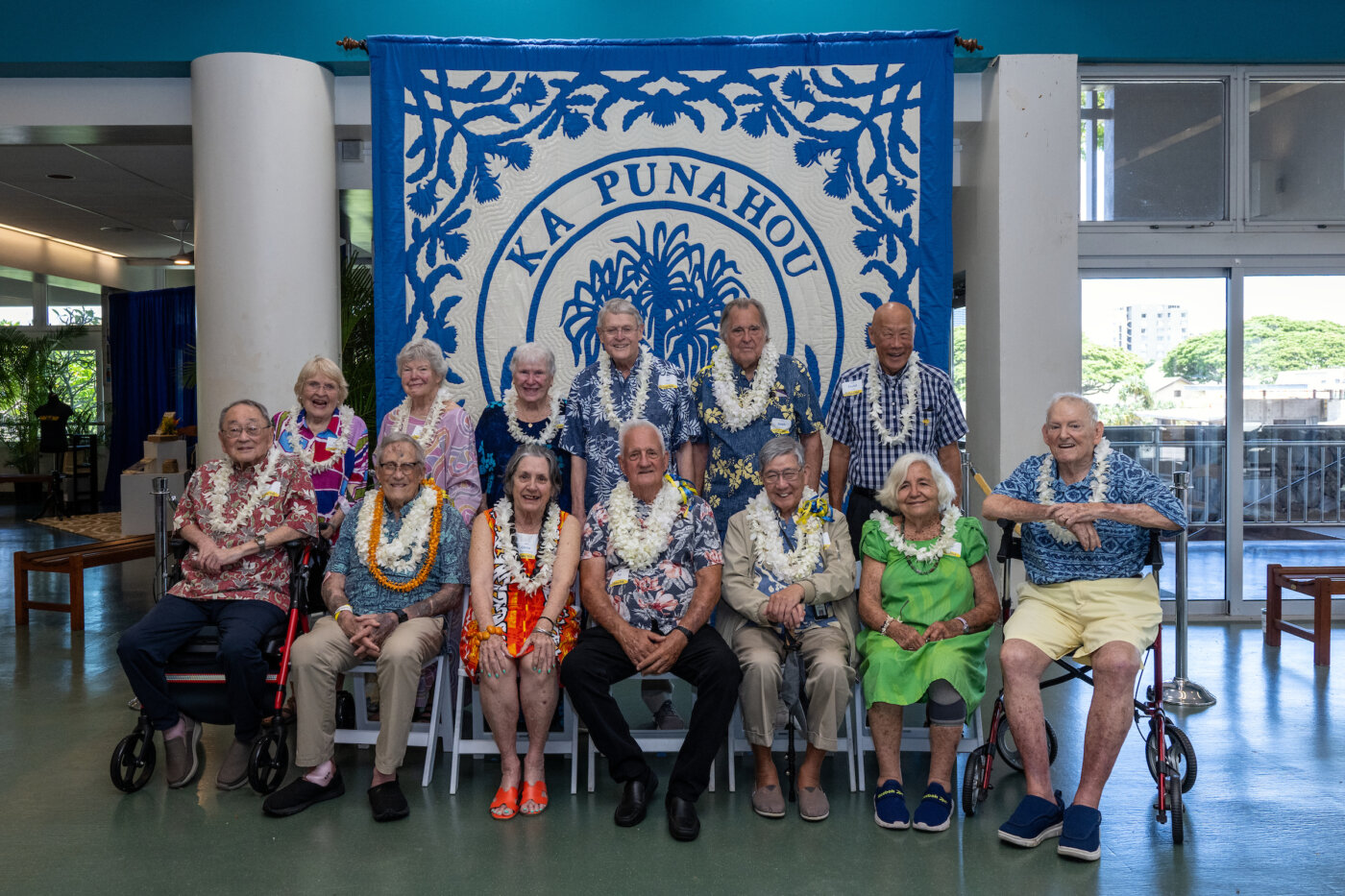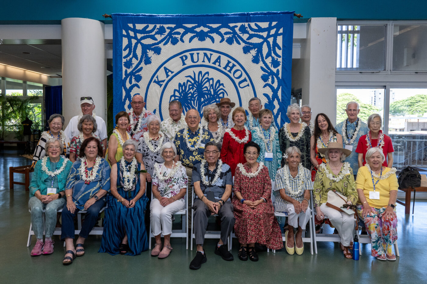 Punahou School hosted a heartfelt gathering on Wednesday, June 4 to honor its older alumni during Alumni Week. This year’s Kūpuna Lūʻau saw an exciting change of venue, moving from the President’s Pavilion to Dole Hall, where more than 100 alumni from the Classes of 1945, 1950, 1955, and 1960 gathered with their guests for a day filled with joyful reunions, delicious Hawaiian food, and inspiring conversations about the School’s present and future.