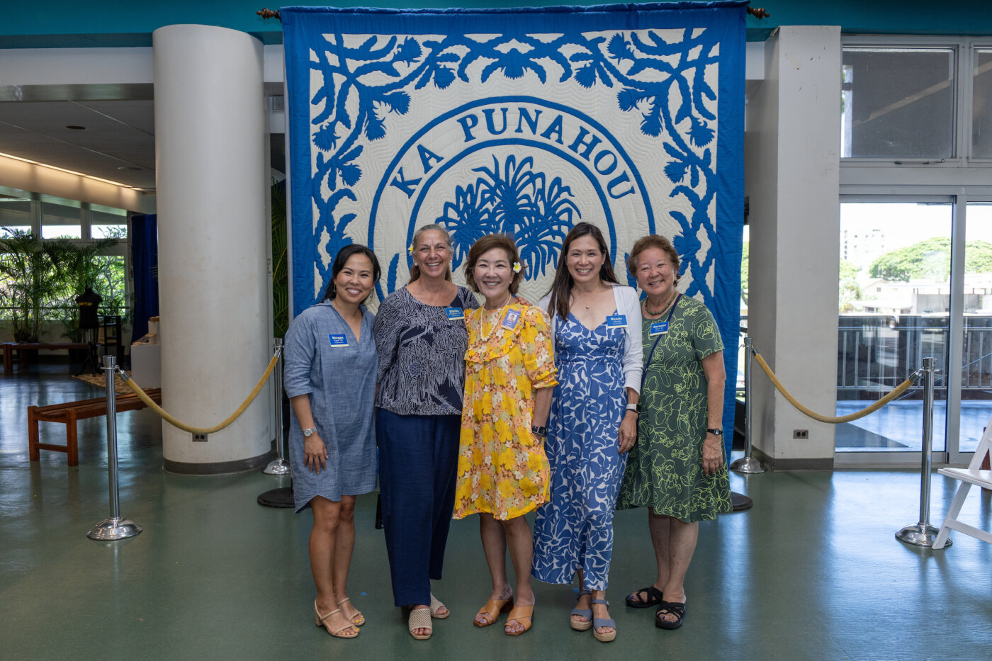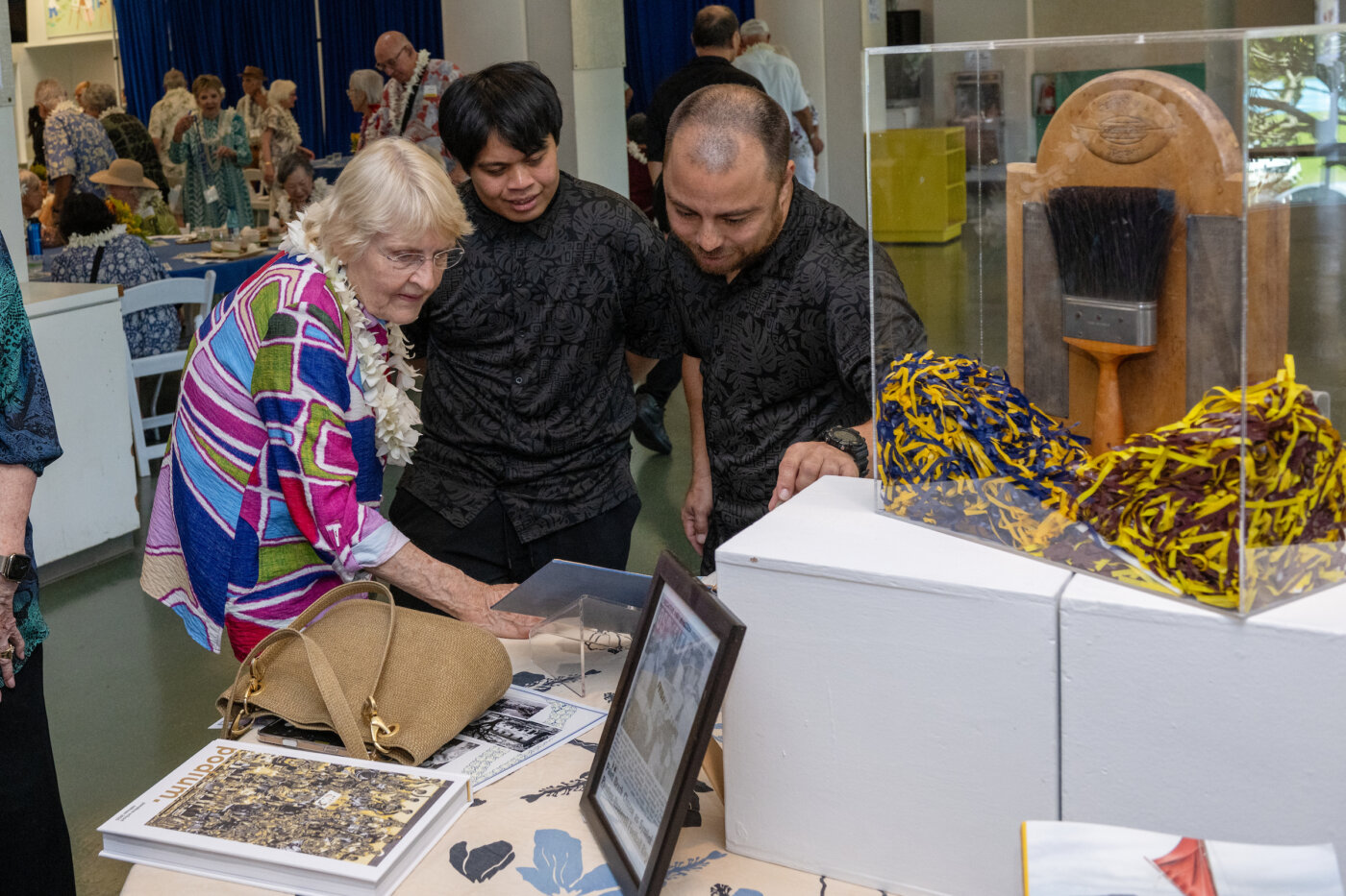 Another highlight was the special archival display, including the Punahou School Hawaiian quilt that hung in Cooke Library. Guests also enjoyed browsing mementos such as Oahuan and Nā ʻOpio yearbooks and the infamous Paintbrush Trophy — a spirited symbol of the football rivalry between Roosevelt High School and Punahou that began in the late 1940s and lasted through the 1960s.
