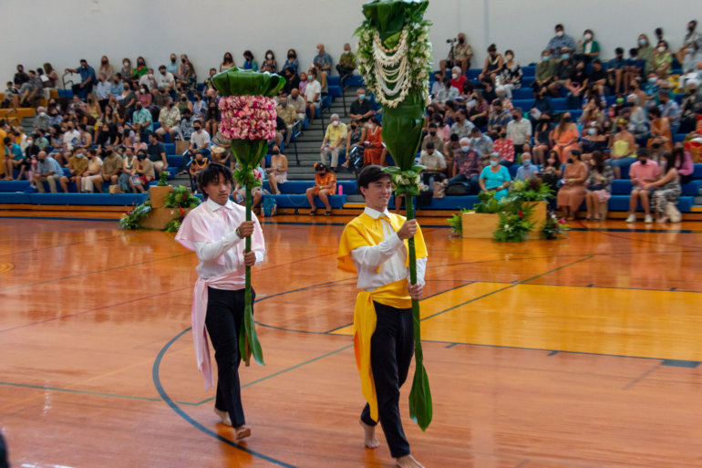 While there is the option of moving to silk flowers, keeping this tradition alive at Holokū is paramount. “We’re all flower people, and we love this kind of stuff,” Hara said. “We get together and talk shop about plants. It’s a lot of work, but at the end of the day, when you’re sitting there watching the show, it’s fun to see your creation fully complete and all the Islands represented.”