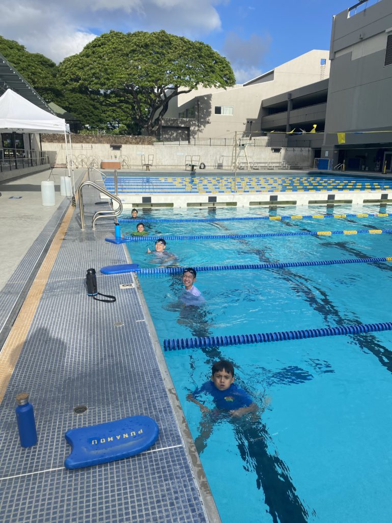 To stay safe, students wear masks and are allowed to take off their face shields for class. All equipment is sanitized before and after. Students also wash their hands and use hand sanitizer before and after any physical activity. Swimmers wear their masks to class and take them off at the last minute and are socially distanced at all times in the pool and on pathways.