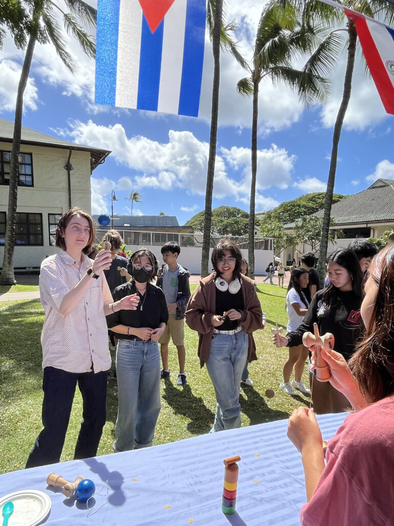 The Academy Quad was abuzz with activity on Friday for the Punahou Multicultural Celebration, a vibrant display of the rich diversity within Punahou’s community. Attendees enjoyed cultural games, foods like mac and cheese, tres leches cake, and crêpes, along with interactive learning activities.