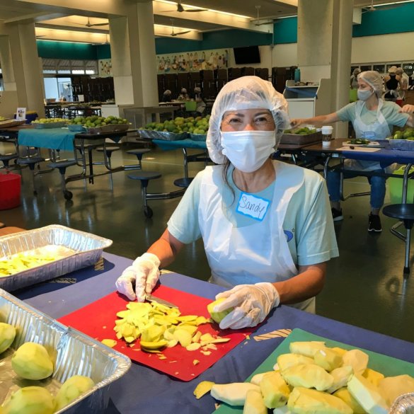 Volunteers and staff are hard at work whipping up batches of Punahou’s famous mango chutney