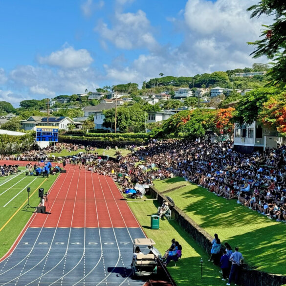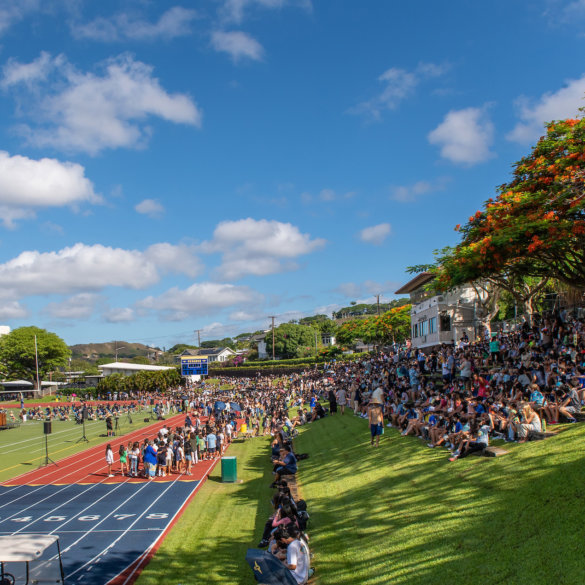 Punahou students and teachers from grades 2 – 12 filled Alexander Field with energy and excitement as they marked the start of the school year at Convocation